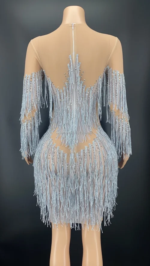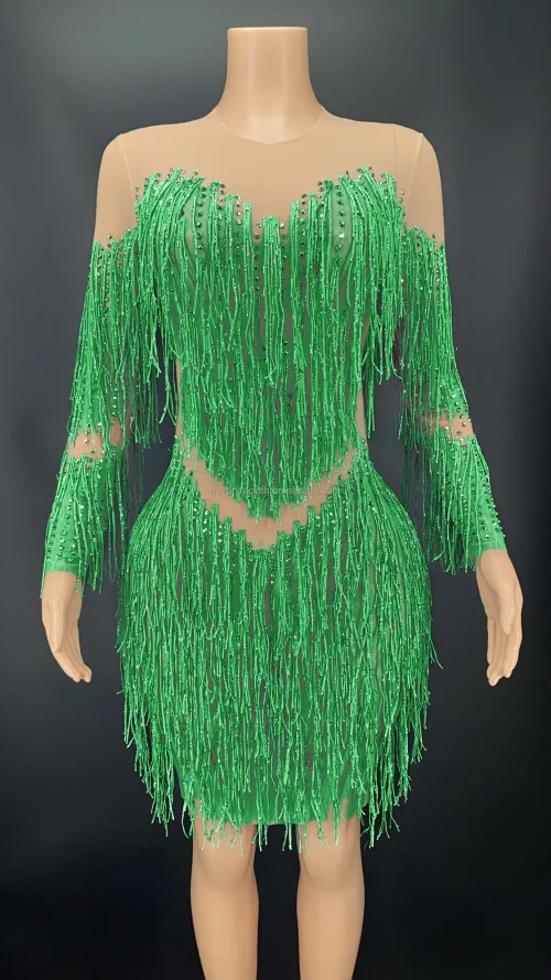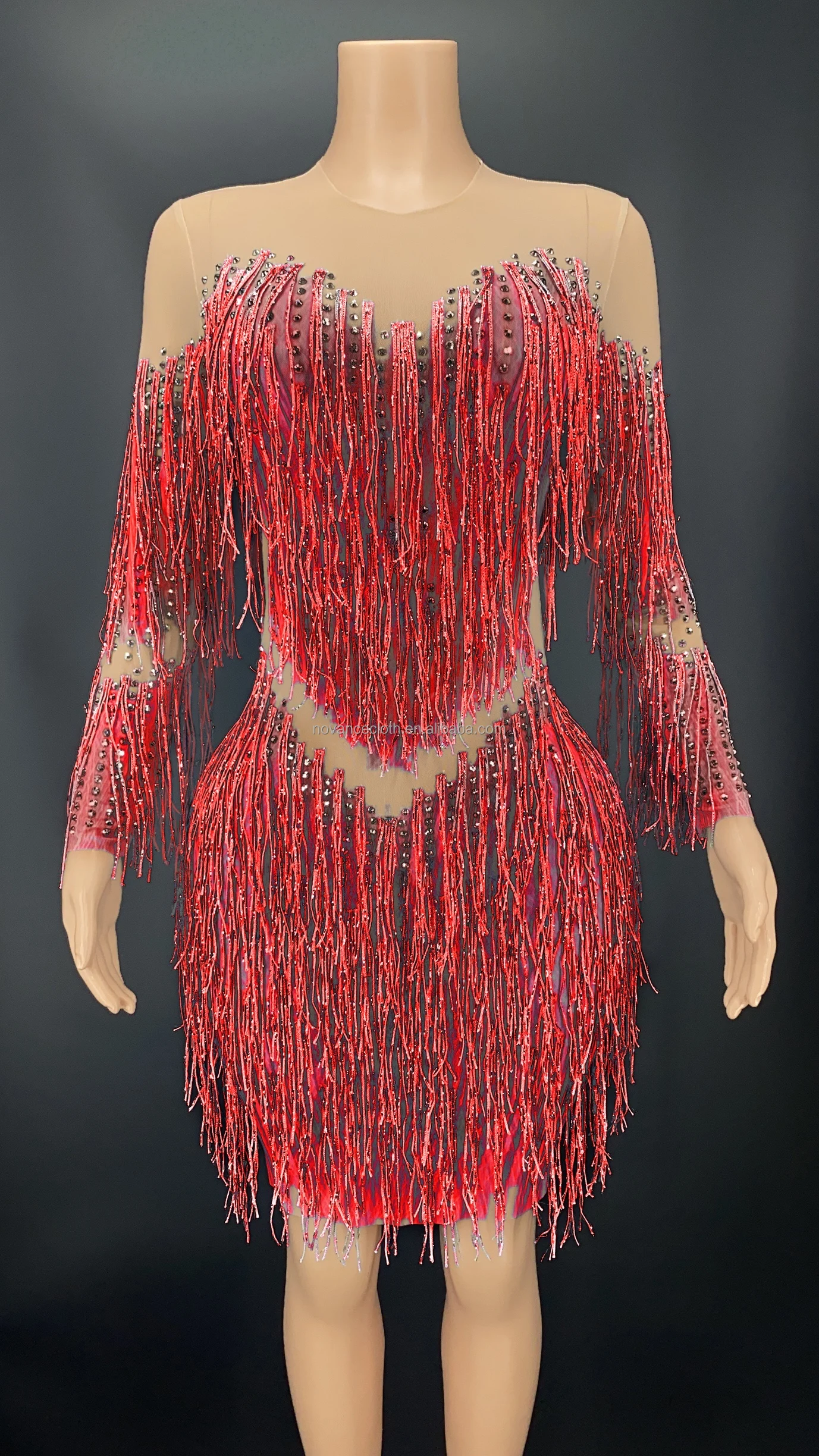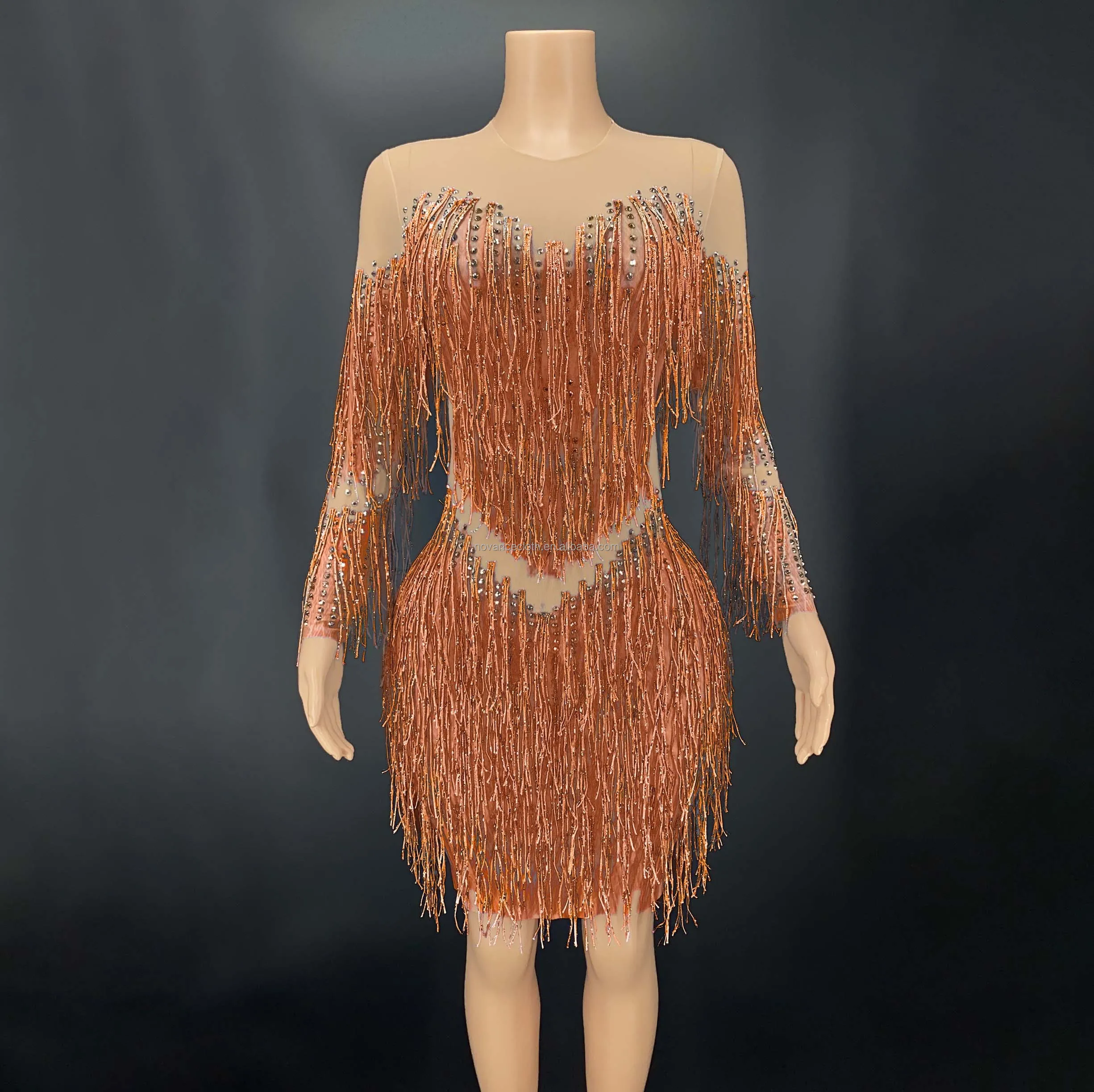 Product Name: Novance Y2341 Women Outfit Cute Sparking Diamonds Tassels Orange Skirt Slim Mini Dress for Prom Party