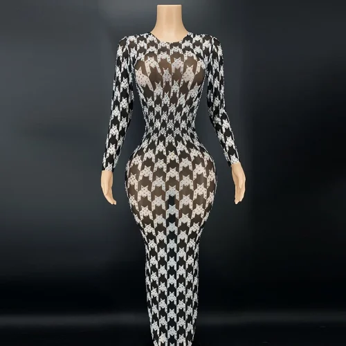 Product Name: NOVANCE Y2347 2022 High Quality Clothes Summer Black and White Print Long Dinner Dress Large Size Woman Party Dress With Crystal