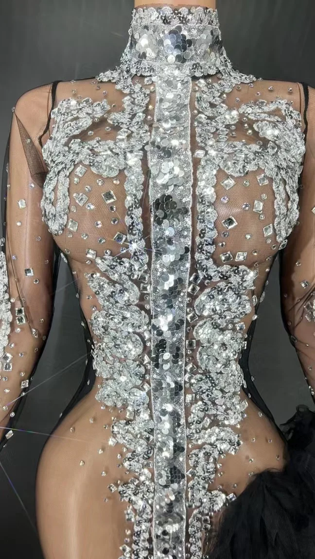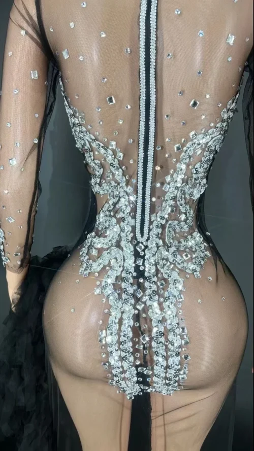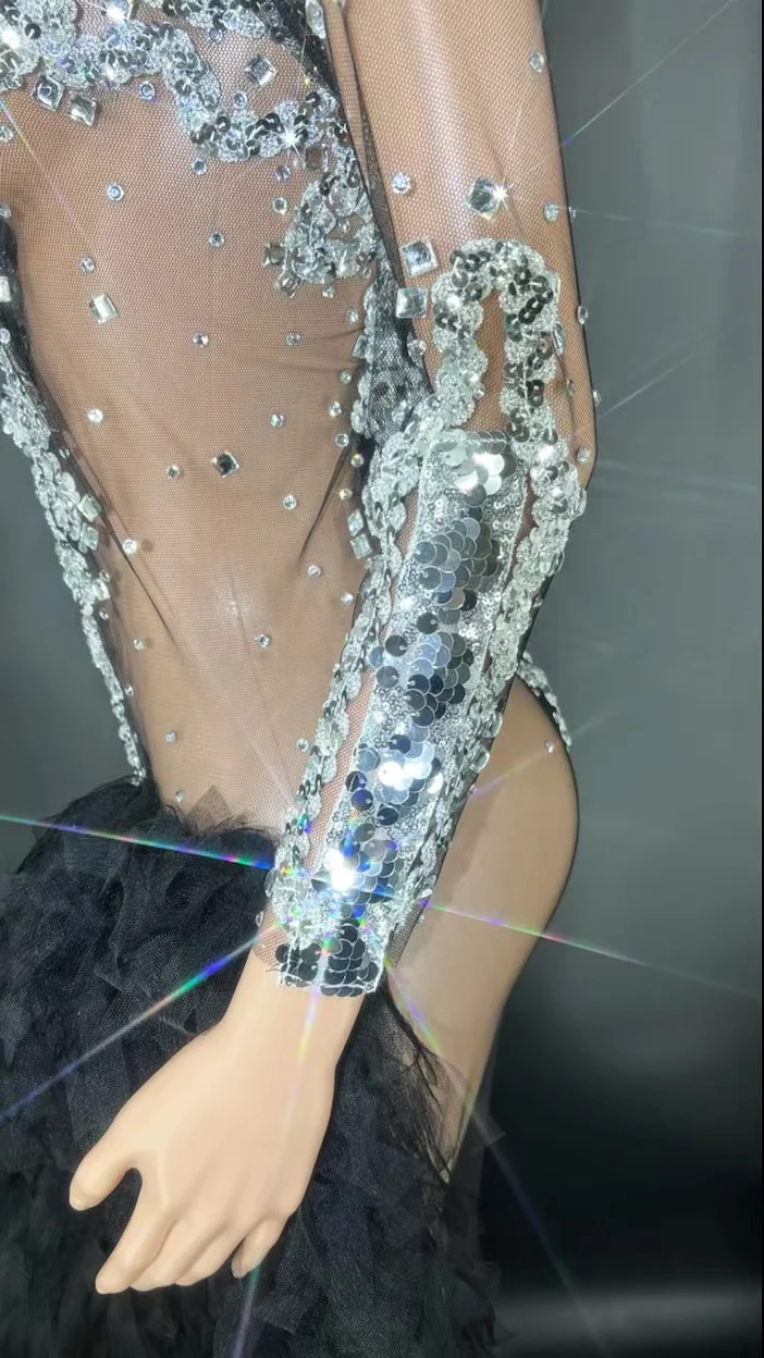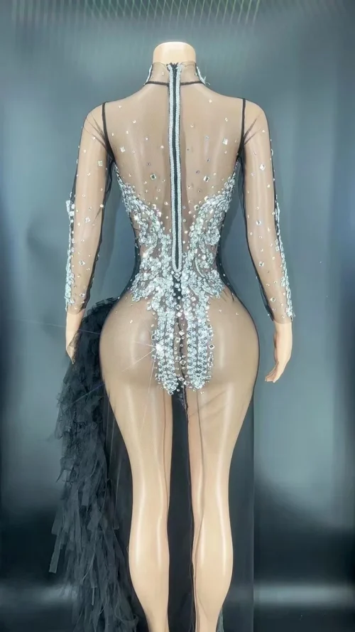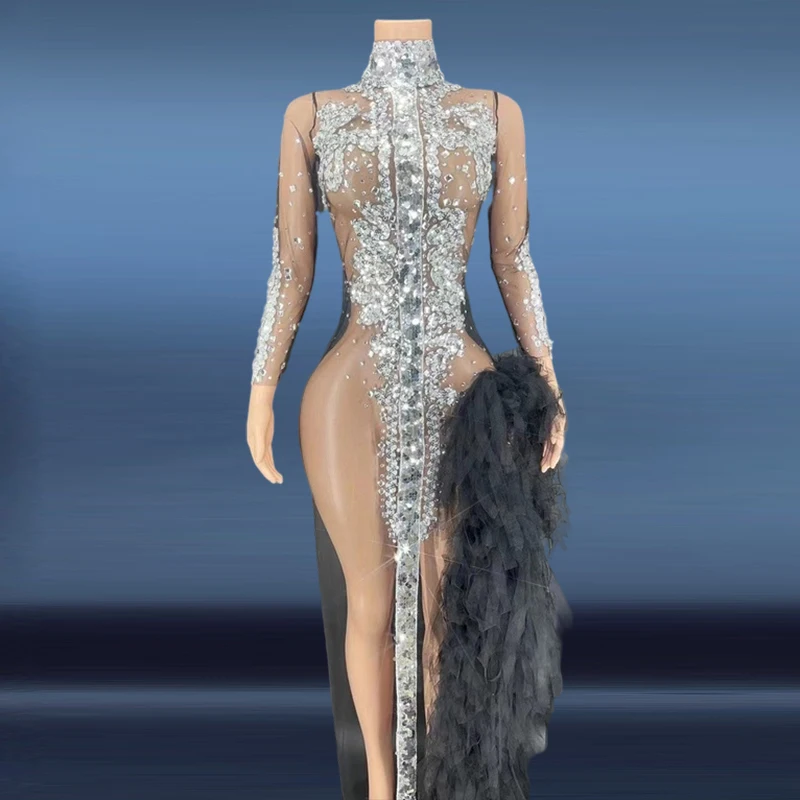 NOVANCE Y2424-B Fashion Clothes Sheer Tulle Glitter Sequins Club Dresses Split Fringed Yarn Evening Dresses Evening Party