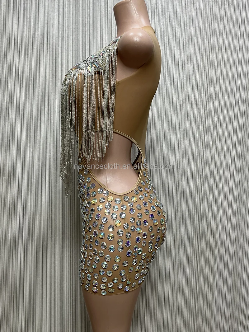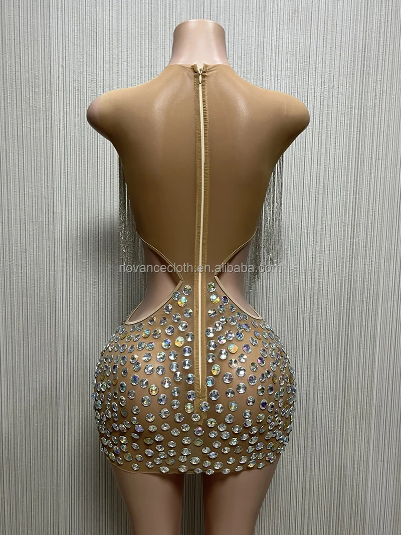 Product Name: Novance Y2504 High Fashion Blingbling Diamond Tassel Special Needs Clothing Nightclub Style Hollow Out Dress Vestido Pasarela