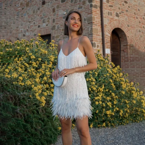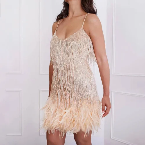 Product Name: Odm Fashion Clothing Manufacturer Fringed Sequined Feather Splicing High Quality Garment Women Casual Dress