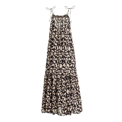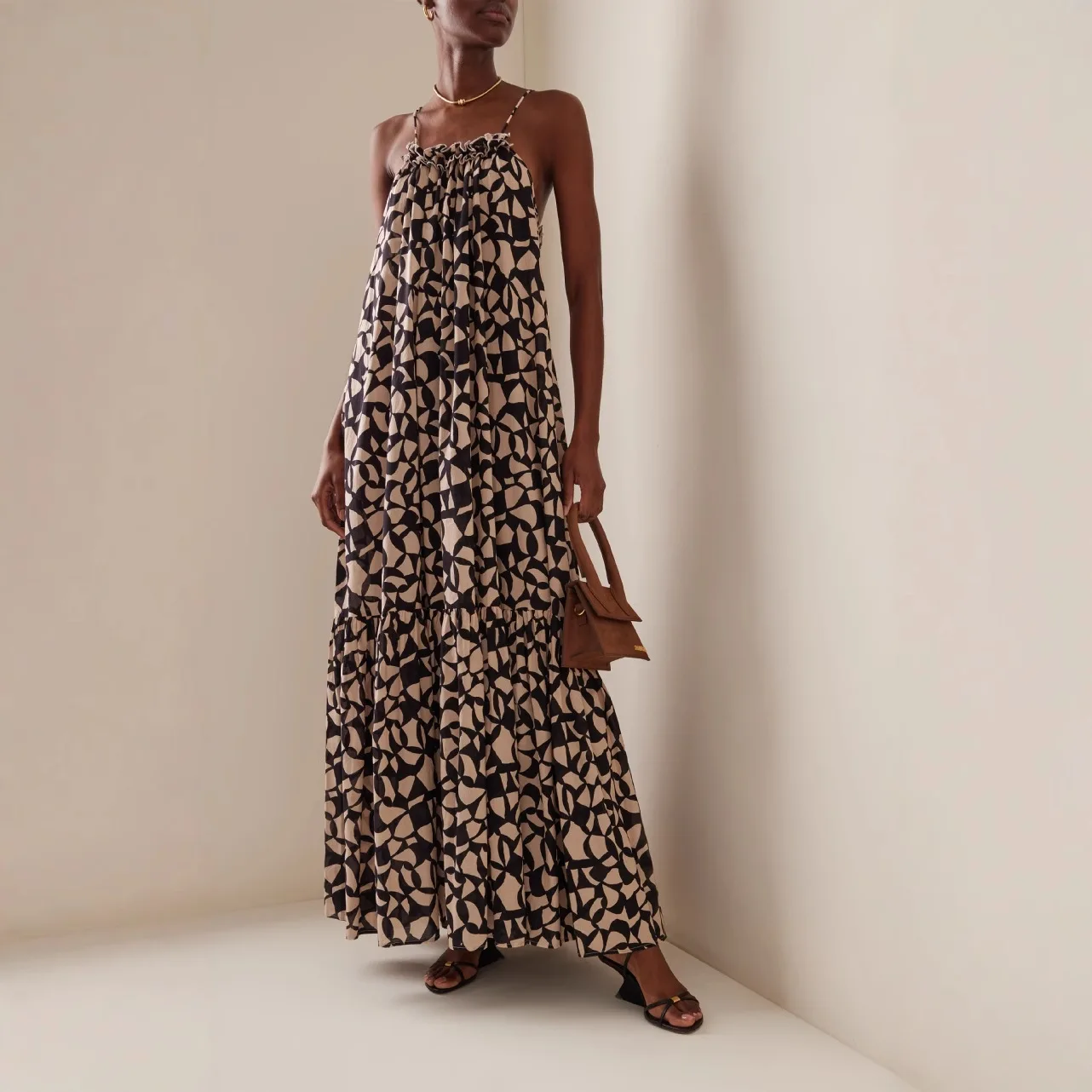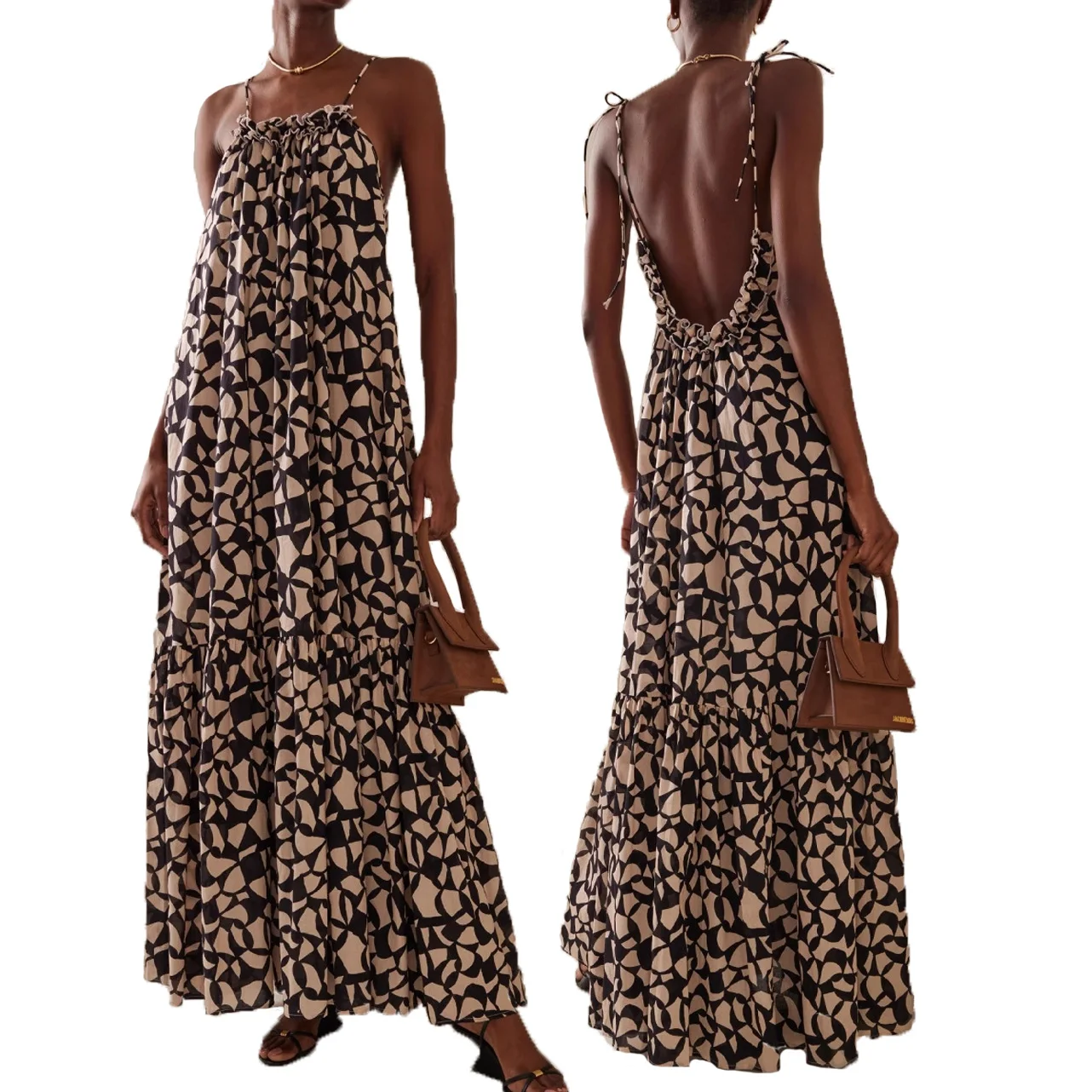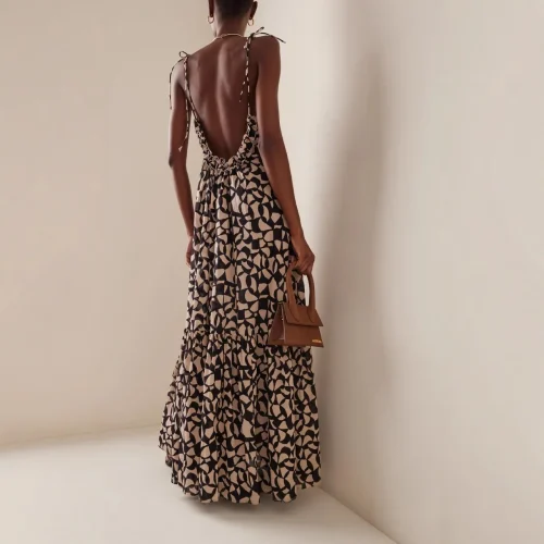 Product Name: ODM Fashion Elegant Women Loose Dress Print Viscose Tie Strap Backless Summer Maxi Dress