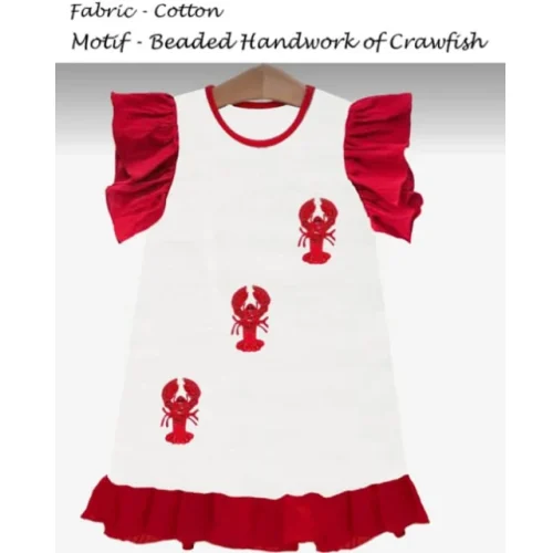 Product Name: One Sided Shoulder Dress All the Way From India Red and White Crab Motif Sequin Beaded Dress Amazingly Sequin Beaded Dress