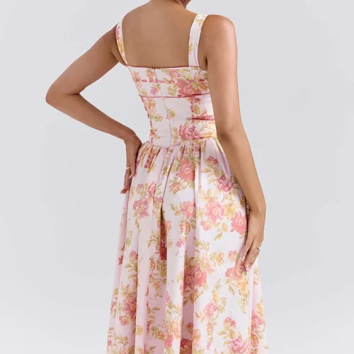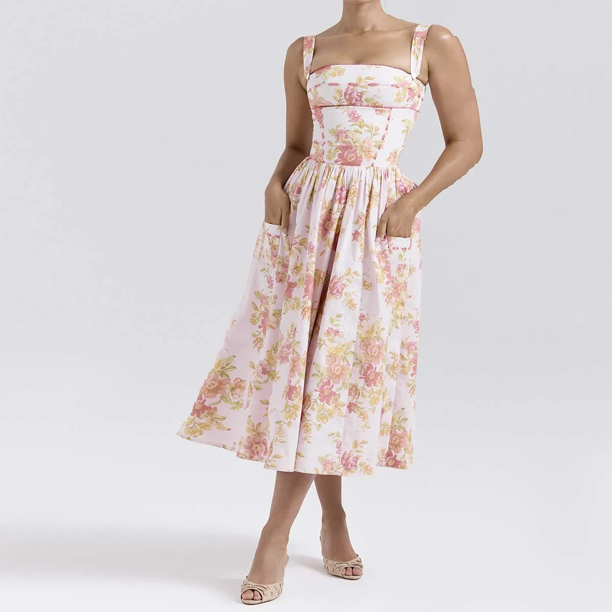 Peach Poppy Print Cotton Midi Sundress Fresh and Floral for Sunny Days Women Clothing