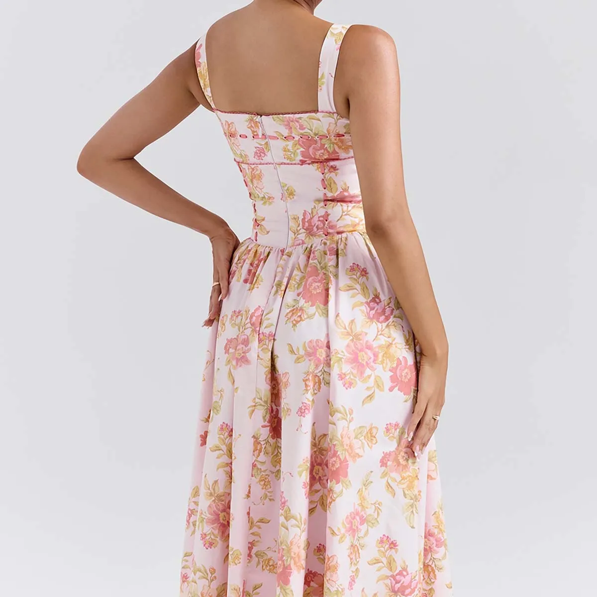 Product Name: Peach Poppy Print Cotton Midi Sundress Fresh and Floral for Sunny Days Women Clothing