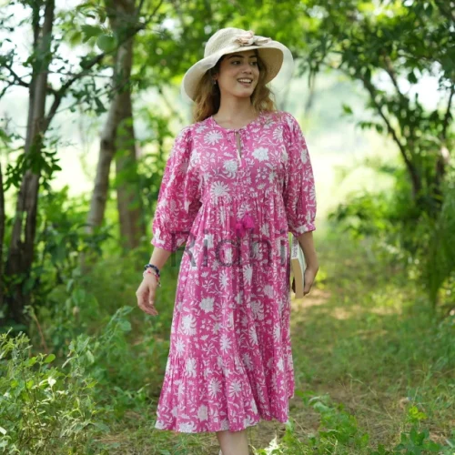 Product Name: Pink Floral Maxi Dress for Women Loose Fit Cotton Summer Sundress Boho Style Casual Dress for Vacation and Mother’s Day