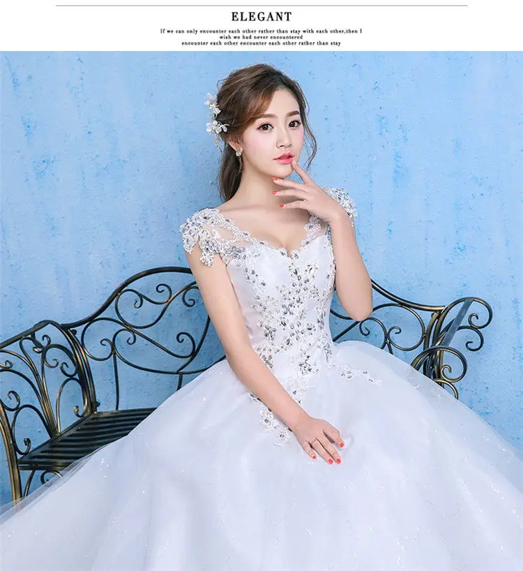 Plus Size Buyuk Beden Gelinlik Quality Long Tail White Puffy Wedding Dress With Diamonds