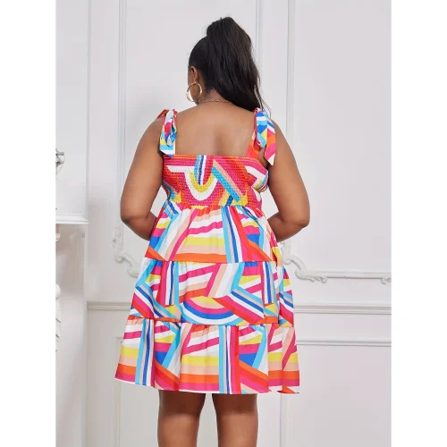 Product Name: Plus Size Colorful Geometric Print Tiered Dress Casual Sleeveless Dress For Spring & Summer Women’s Plus Size Clothing