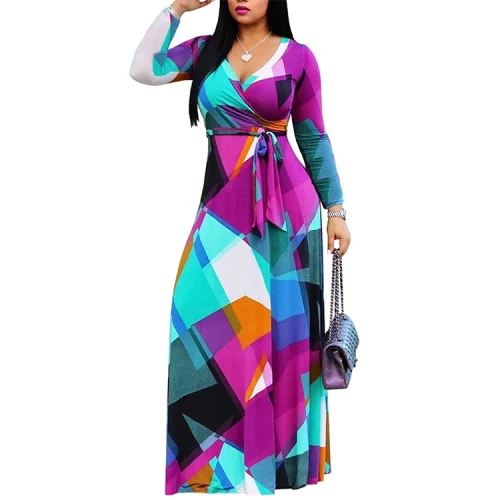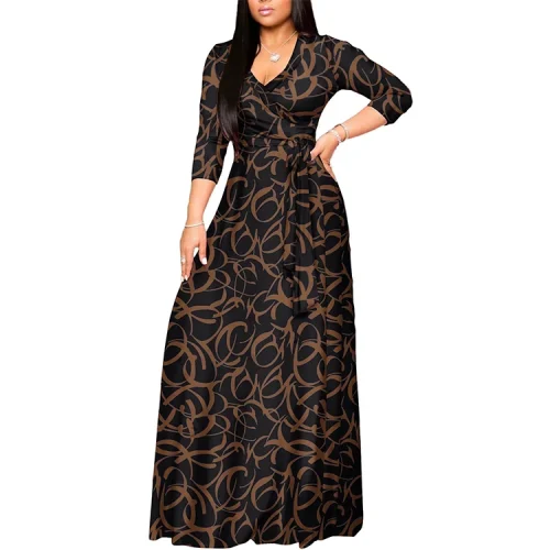 Product Name: Plus Size Maxi Dress for Women Casual Summer Sundress V-Neck 3/4 Sleeve Floor Length Dress With Belt