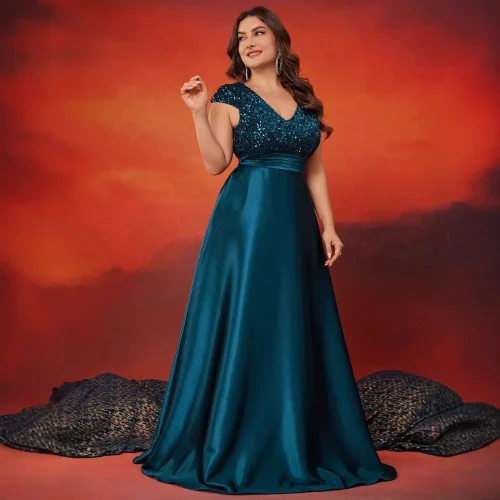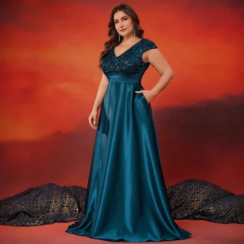 Product Name: Plus Size Women’s Elegant Satin Evening Party Dress New Sequined V-Neck Sleeveless Long Skirt for Summer