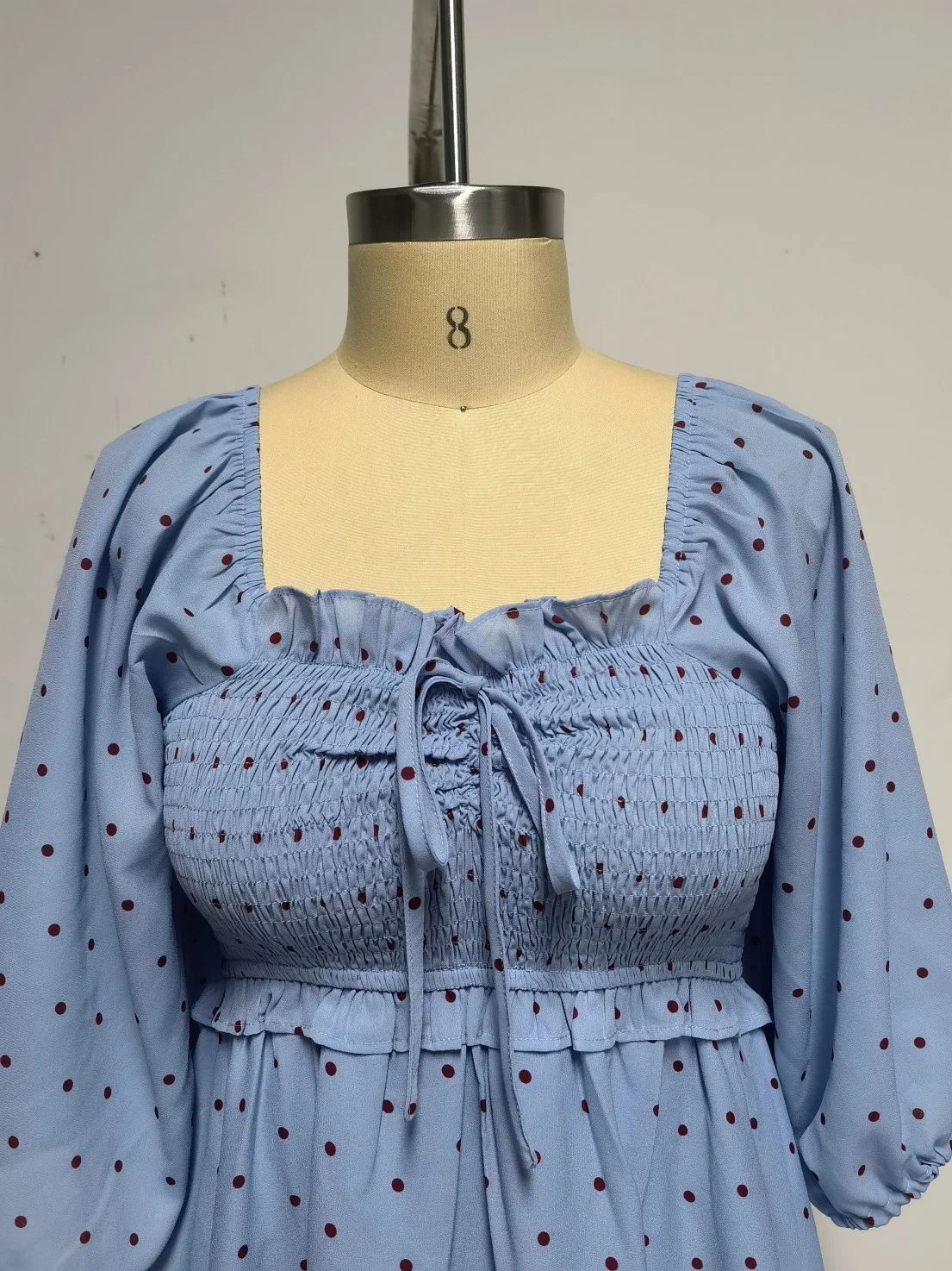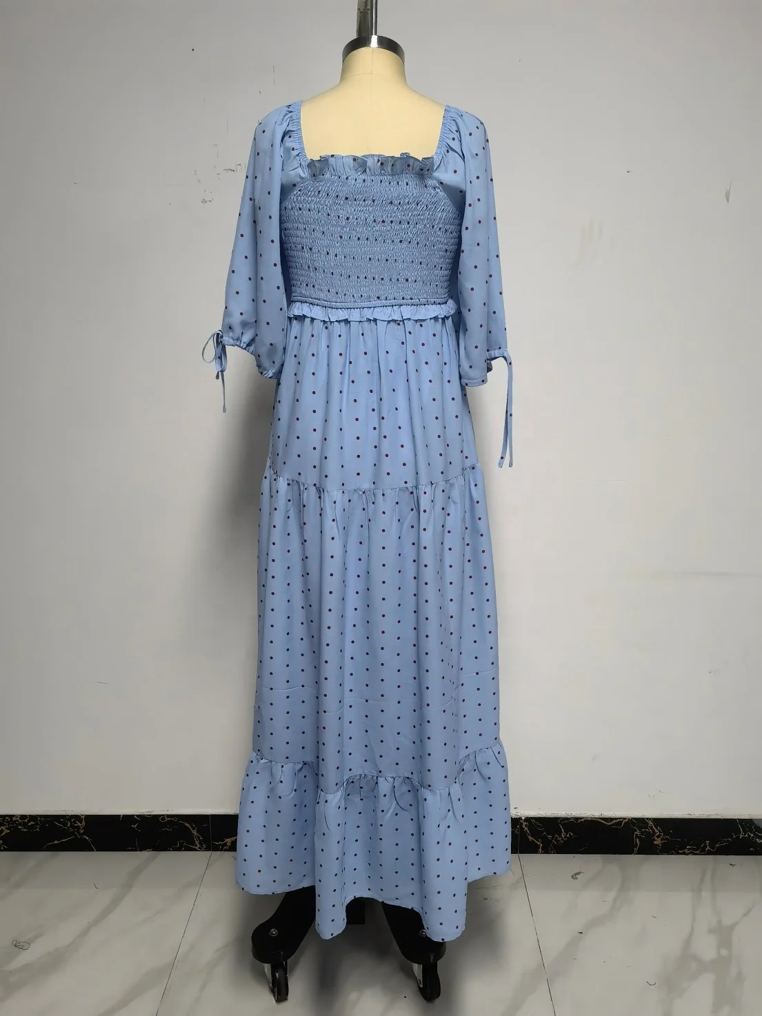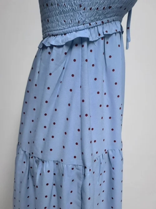 Product Name: Polka Dot Bohemian Smocked Maxi Dress, High Quality Digital Print Flowy Summer Beach Sundress for Women