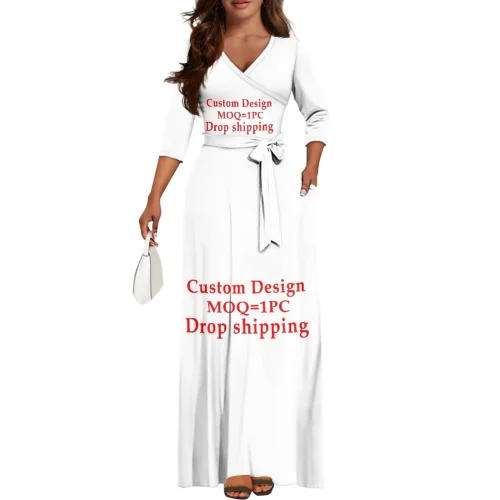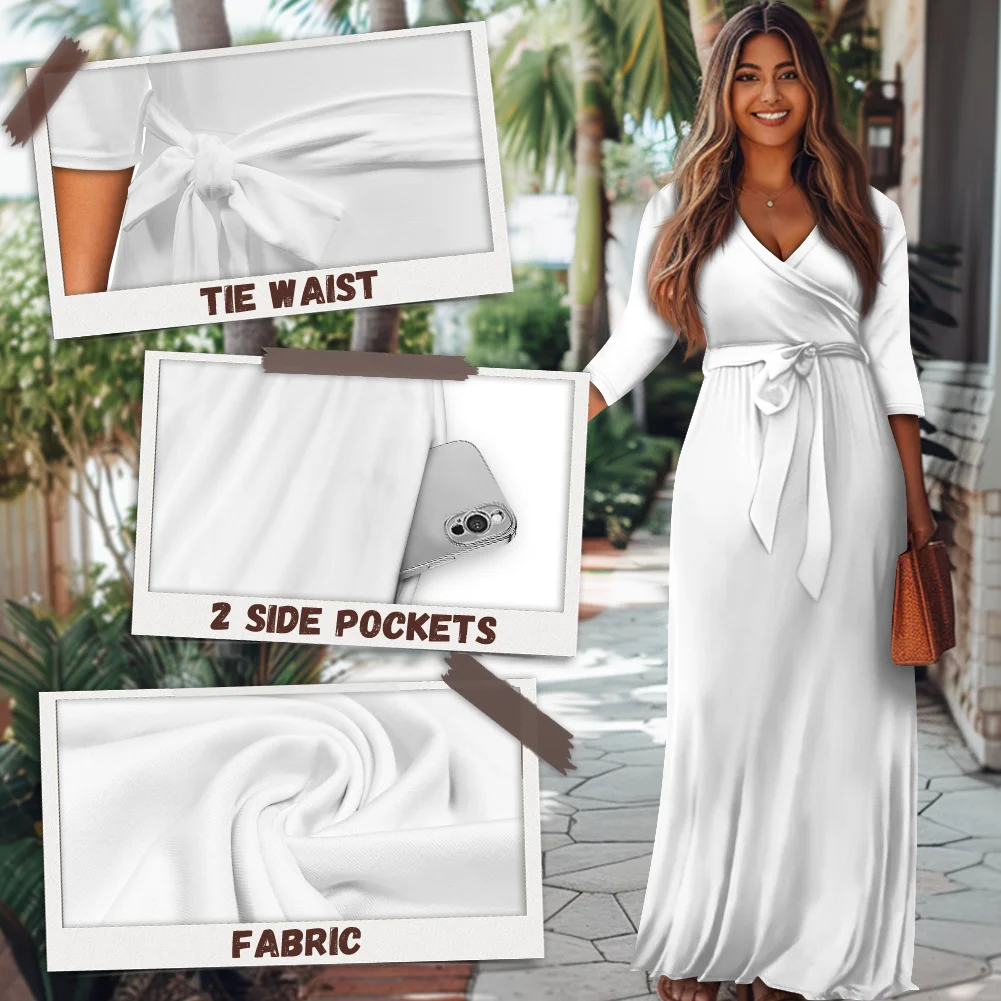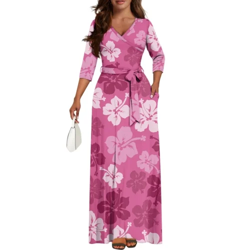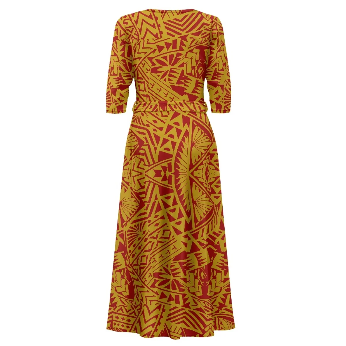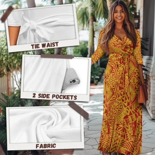 Polynesian Tribal Dress for Women Casual Summer Sundress Women’s V Neck 3/4 Sleeve Party Loose Long Maxi Dress with Belt