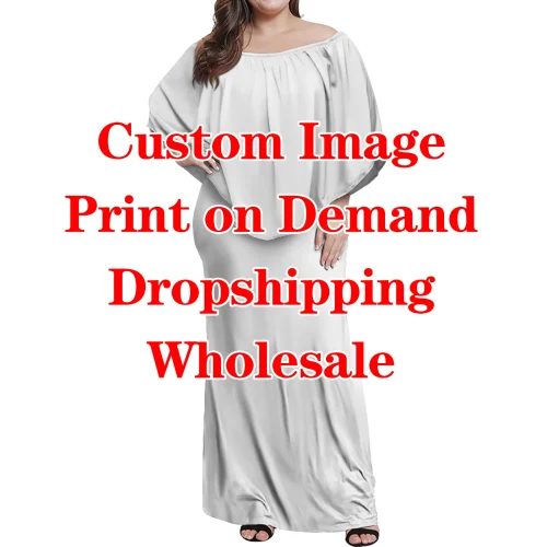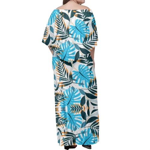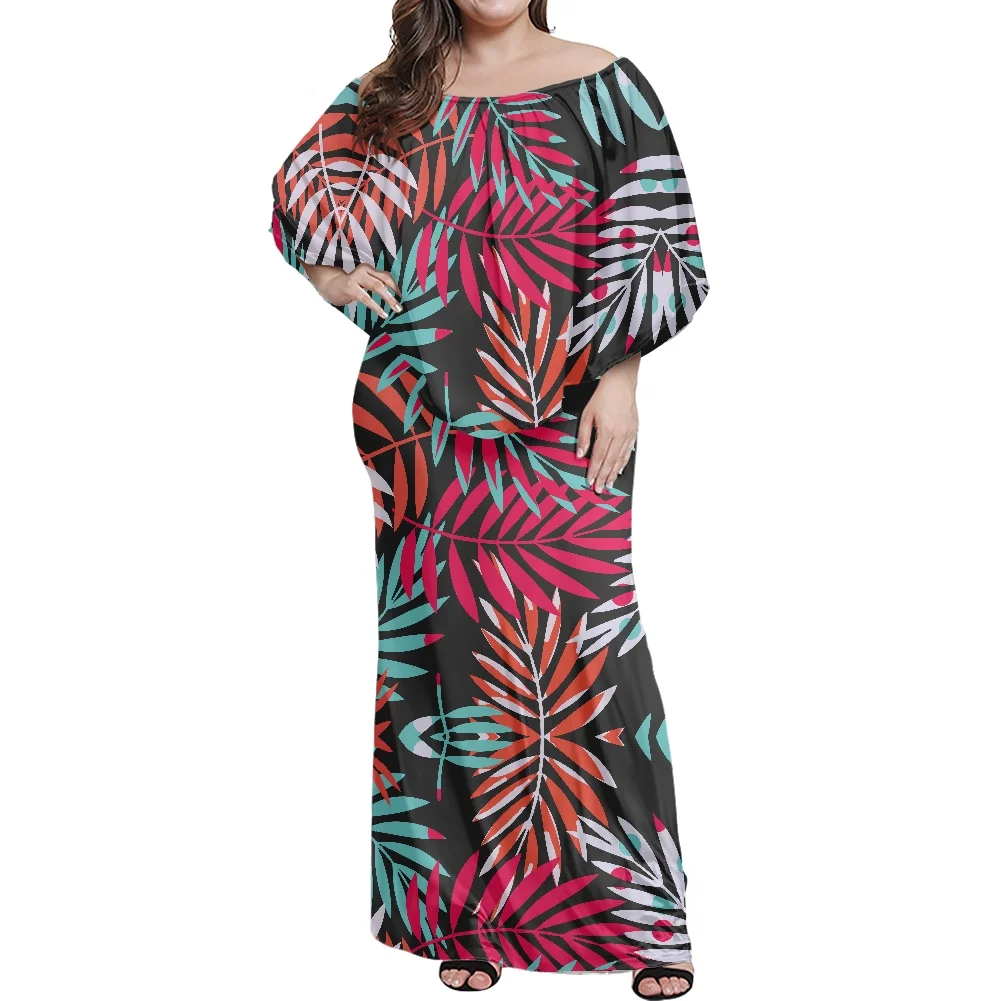 Polynesian Tribal Plumeria Leaf Print Off the Shoulder Ruffle Bodycon Party Maxi Dresses Sundress Summer Women Maxi Dress Ladies