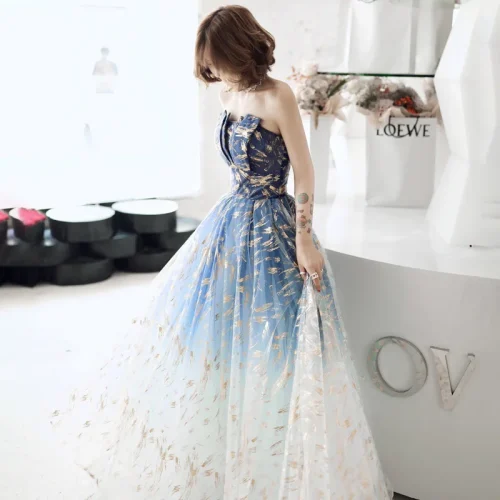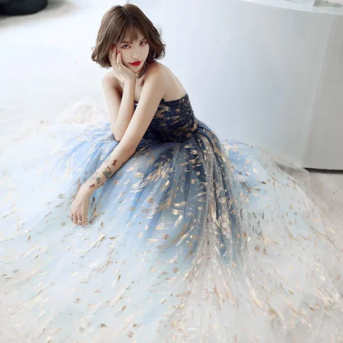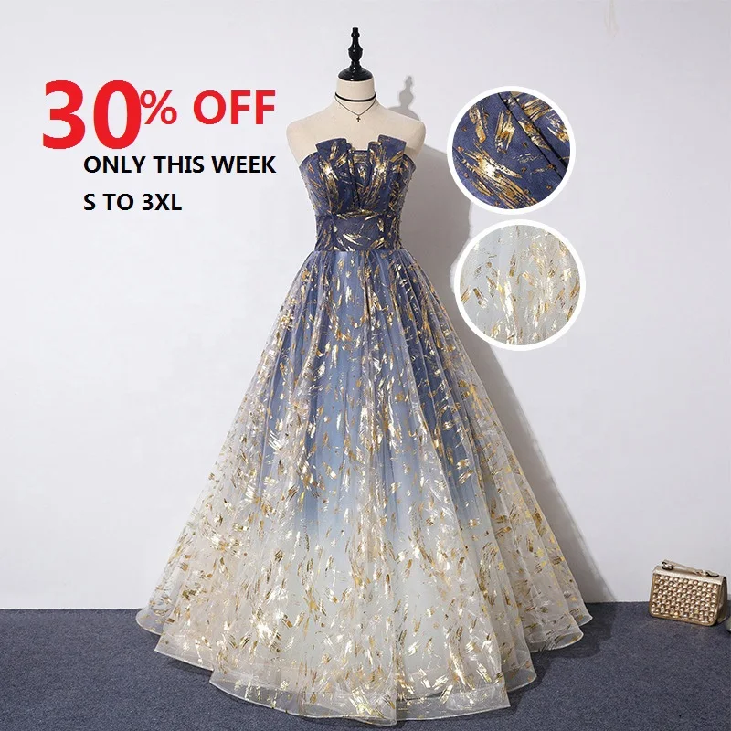 Popular Women Sexy Sequined Plus Size Prom Dress Strapless Quinceanera Party Gown Gradient Color Evening Dress