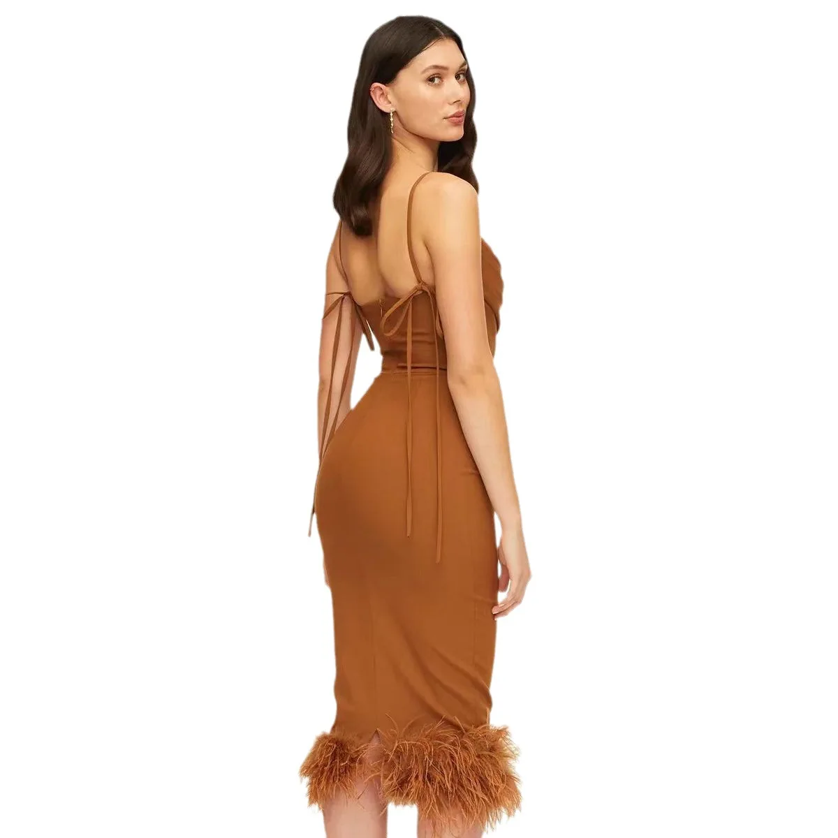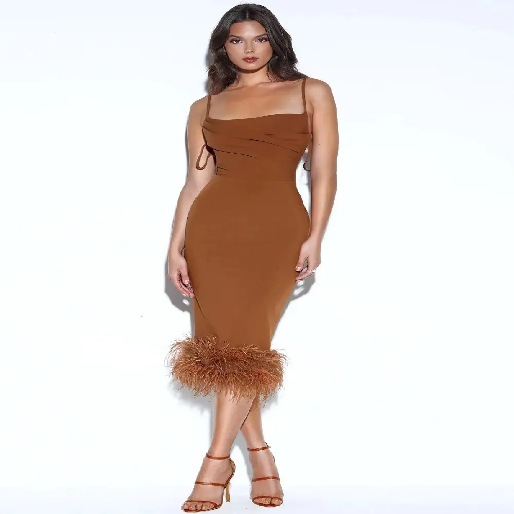 Product Name: Popular Women’s Elegant Dresses, Fashionable Feather Skirts, Tight Hip Wrapping Sundresses