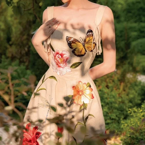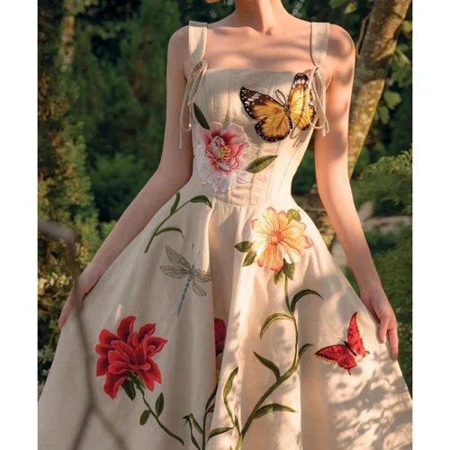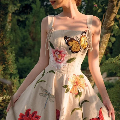 Product Name: Princess Party Dress Flower Women’s Sun Dress 2023 Summer New 3D Print Retro Waist Strap Dress