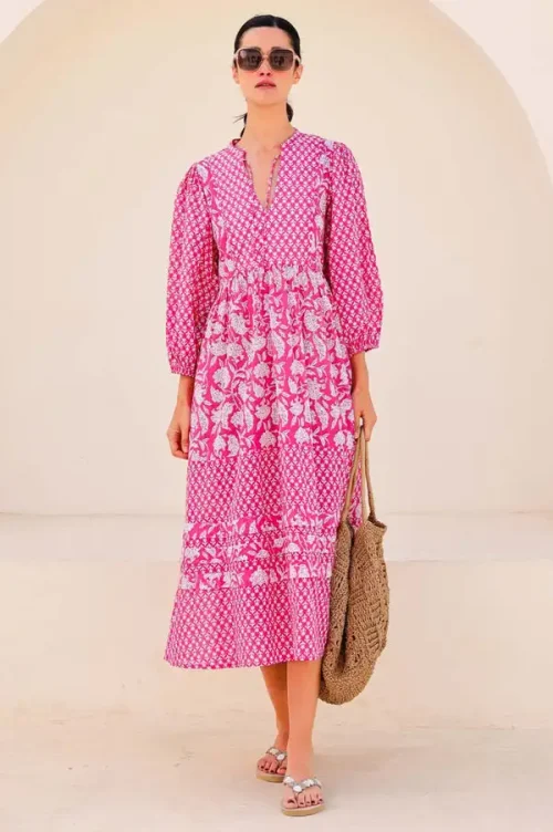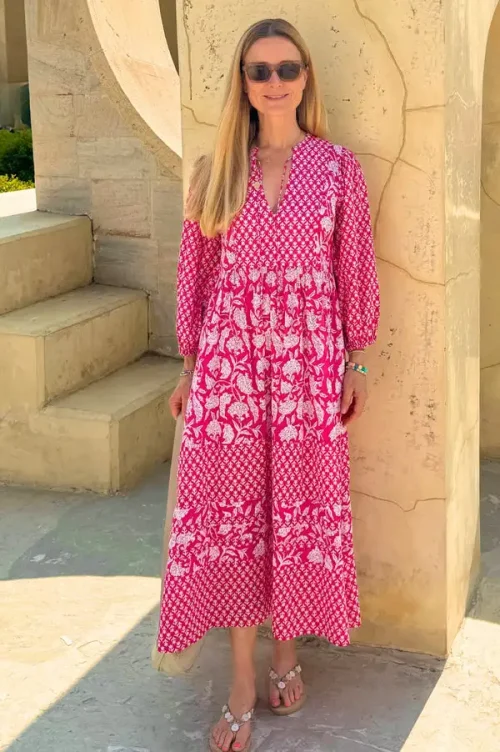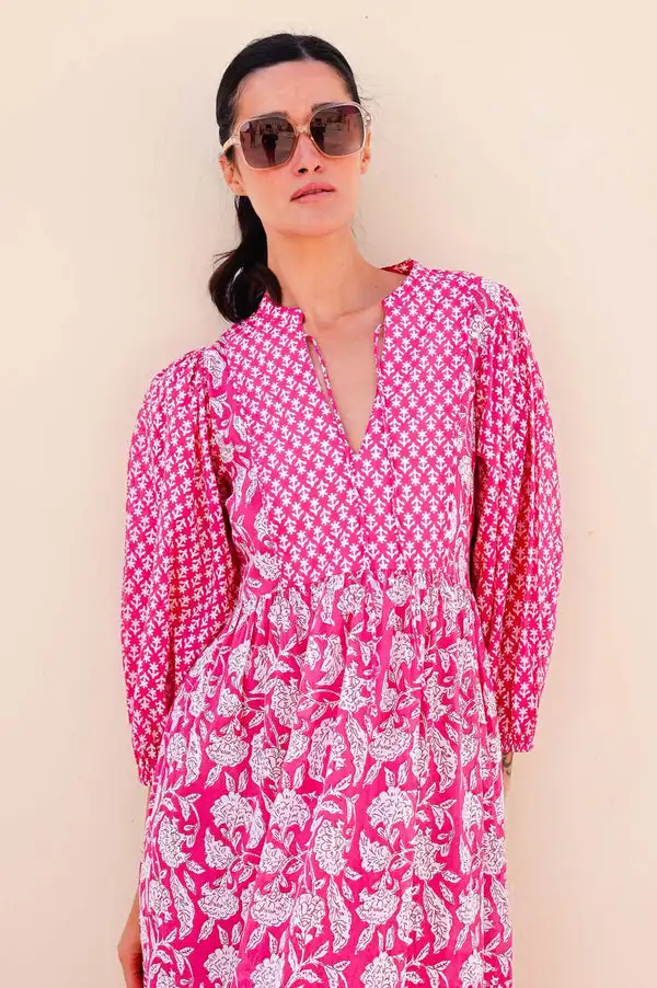Product Name: Pure Cotton Boho-Elegant Summer Dress for Women Indian Block Print Soft Floral Comfortable Daywear Earthy for Office Lady Outfit