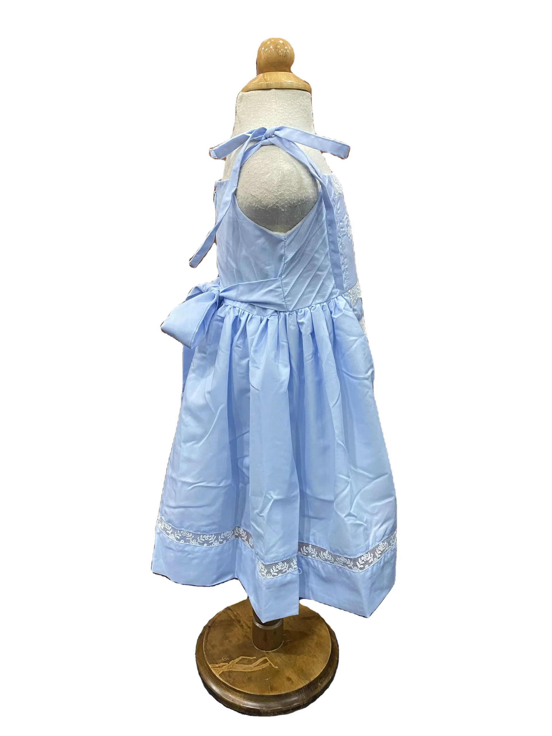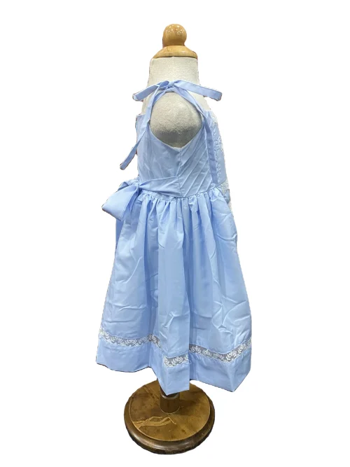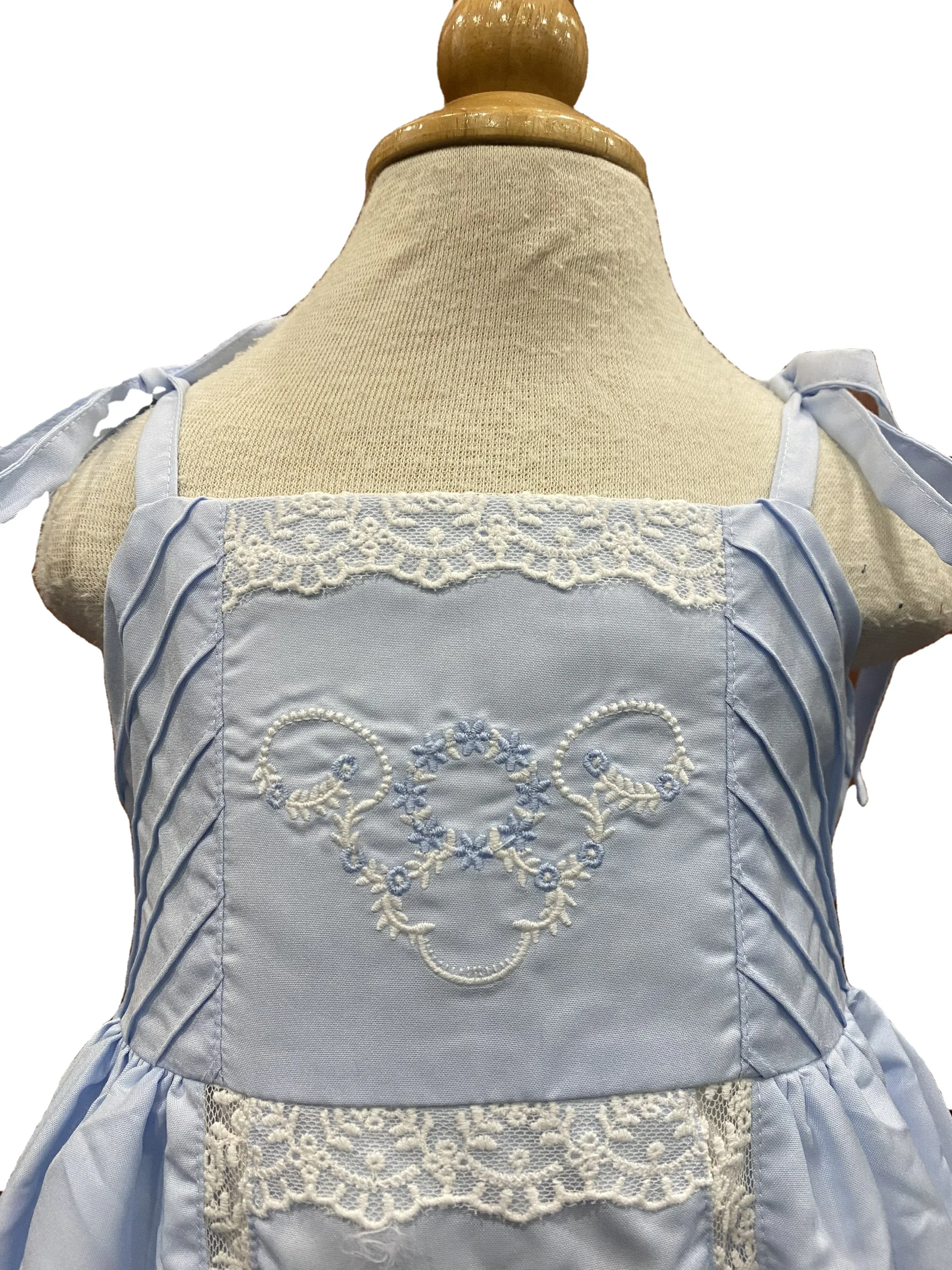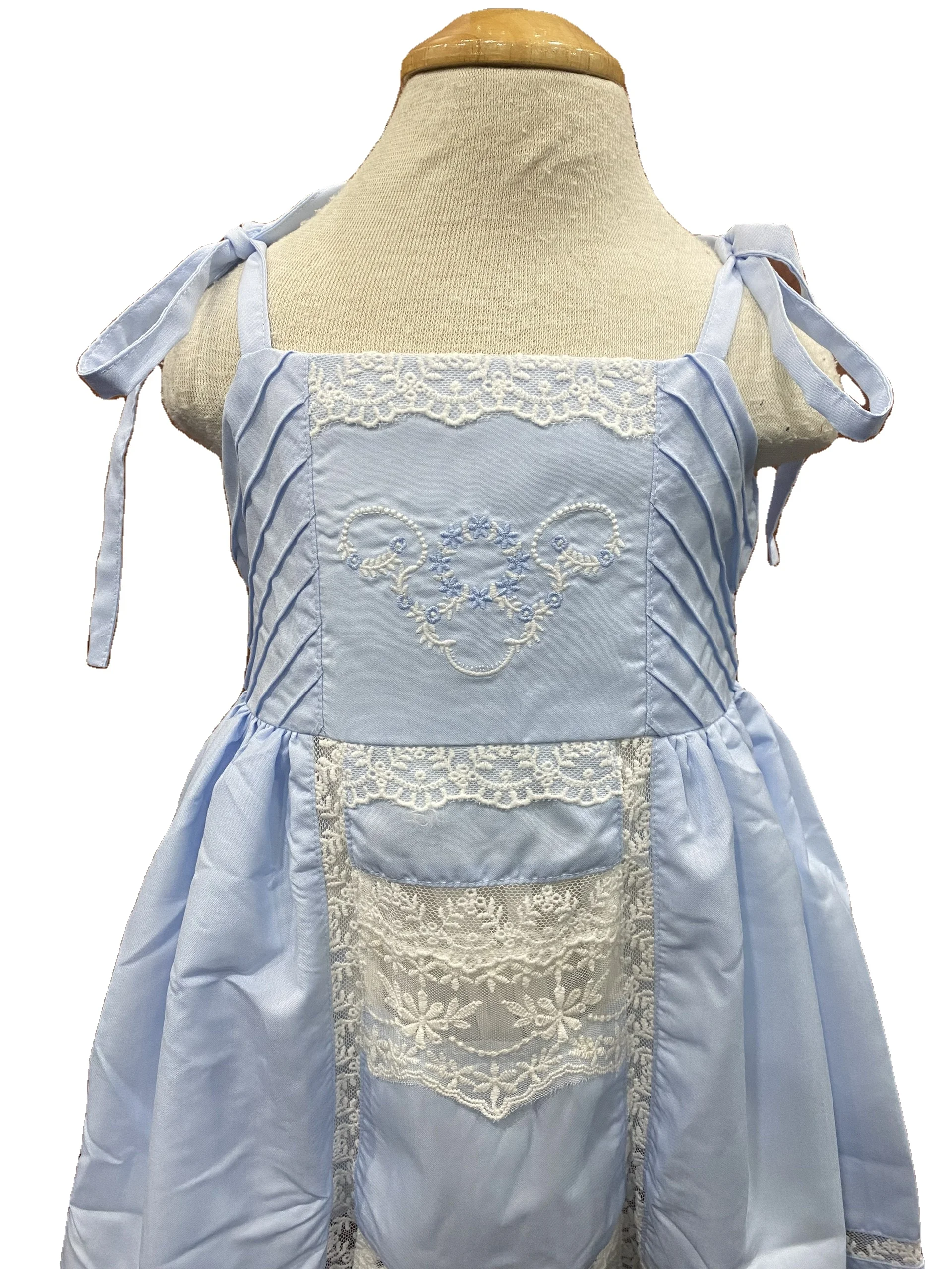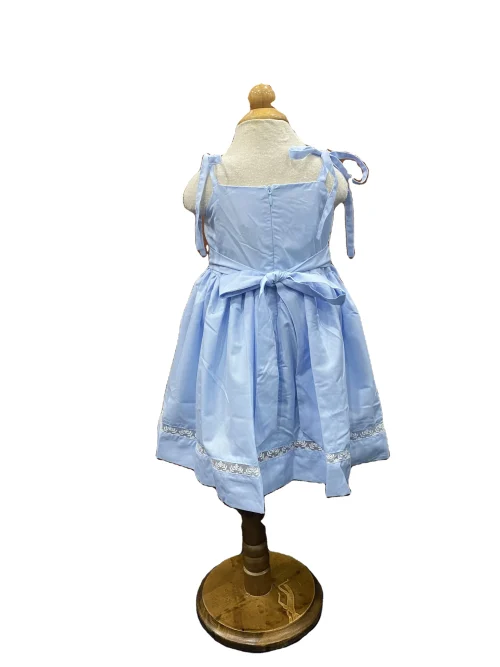 Product Name: Ready Ship Cute Sleeveless Blue Dress 6-Year-Old Baby Girl Khate Fabric Machine Embroidery Lace Connect Mini Parties Included
