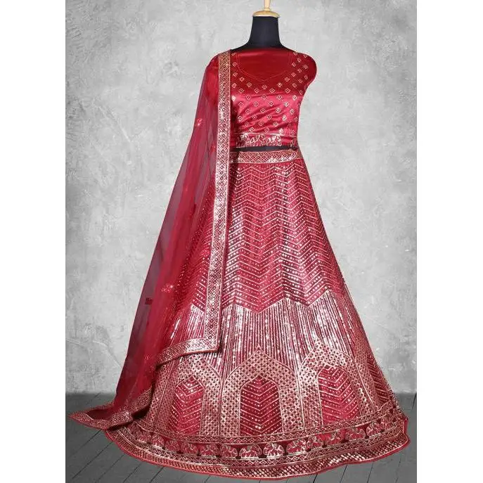 Red Sequins Work Wedding Dresses izable Lehenga Choli with Long Net Skirt Classic Royal Style Floor-Length for Brides
