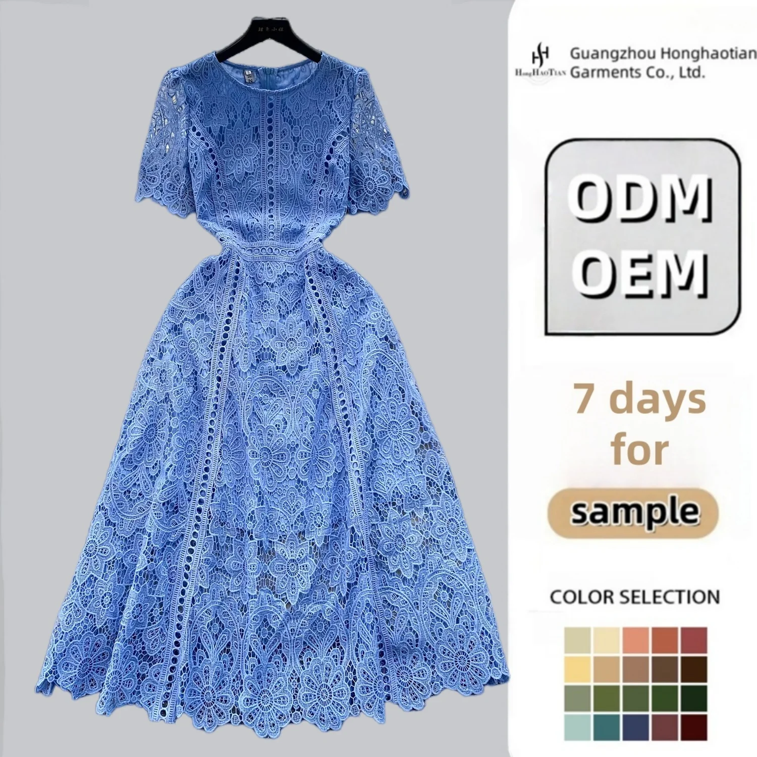 Product Name: Retro High-End Round Neck Ruffle Sleeve Lace Dress for Women’S Summer New Slim and Elegant Long Dress