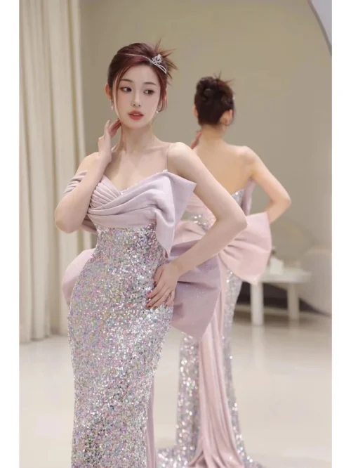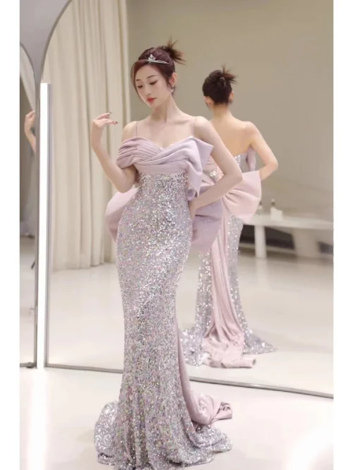 S0149G New High -level Sensing Banquet Temperament Lady Sequins Fish Tail High -end Light Luxury Elegant Women’s Evening Dresses