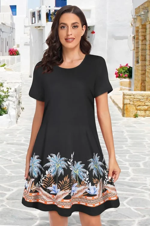 SAMAVIA Women Summer Dresses Beach Casual Loose T-Shirt Floral Short Sleeve Flowy Pockets Sundresses