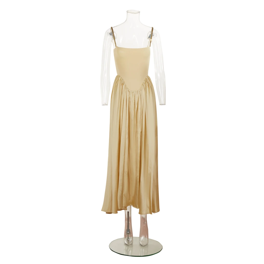 Product Name: SB3300 Elegant Summer Sleeveless Slim Casual Long Yellow Dress Crystal Strap Bandage Ruffle Dresses