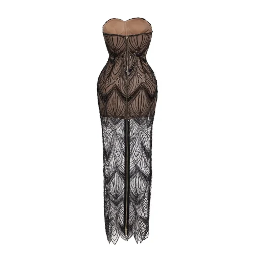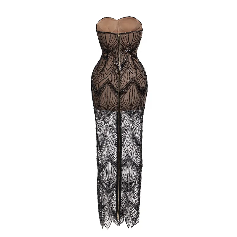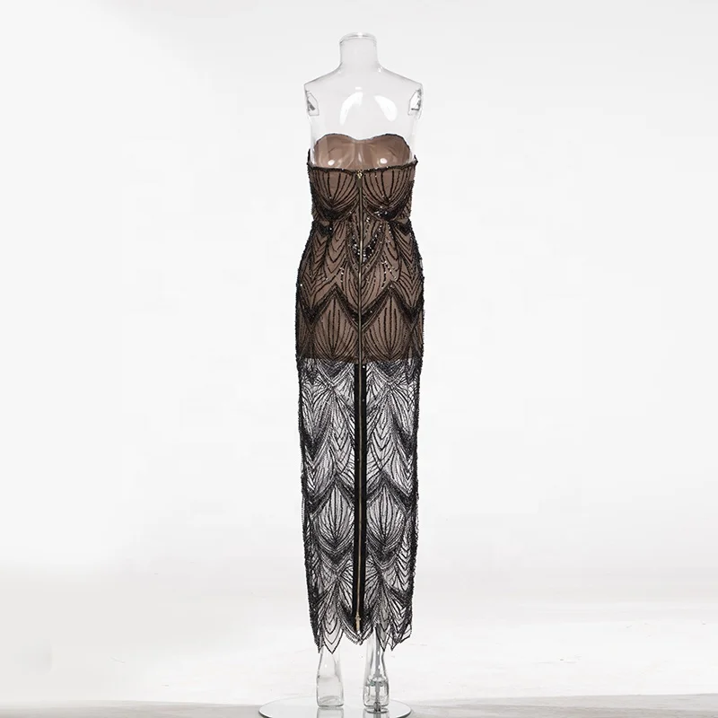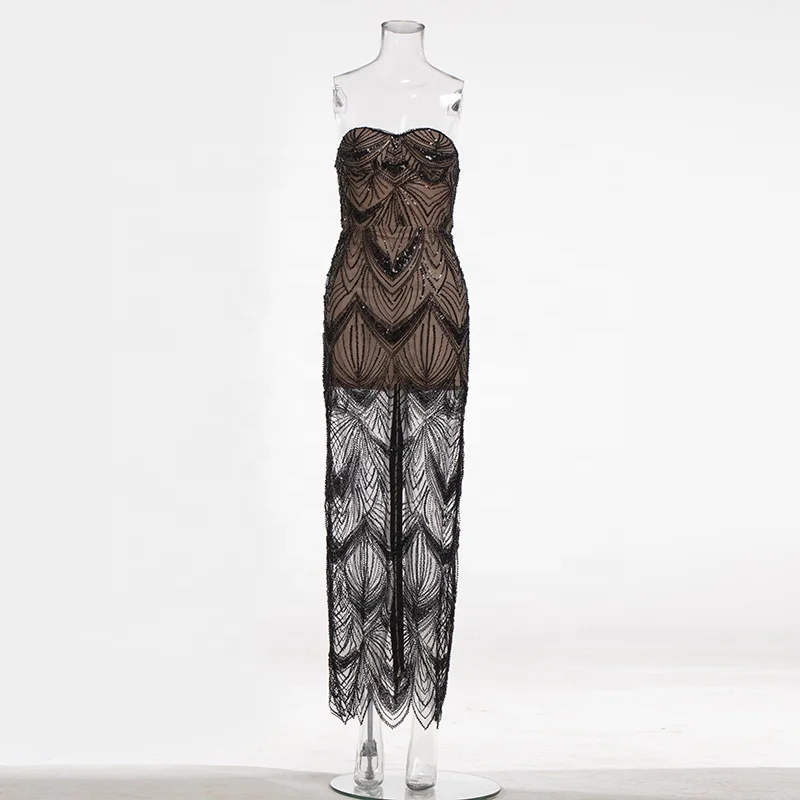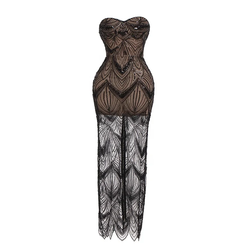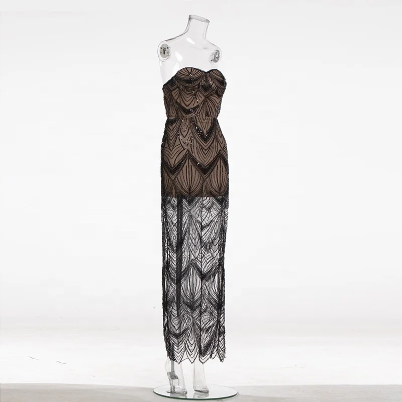 Product Name: Sex See-through Sequins Straight Gown Strapless Sleeveless Backless Low Cut Floor Length Club Prom Cocktail Trendy Evening Dress