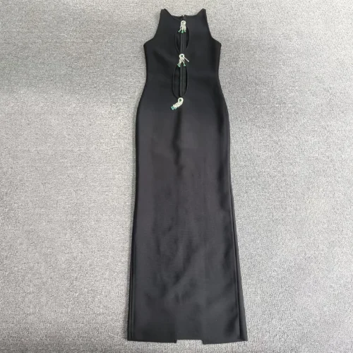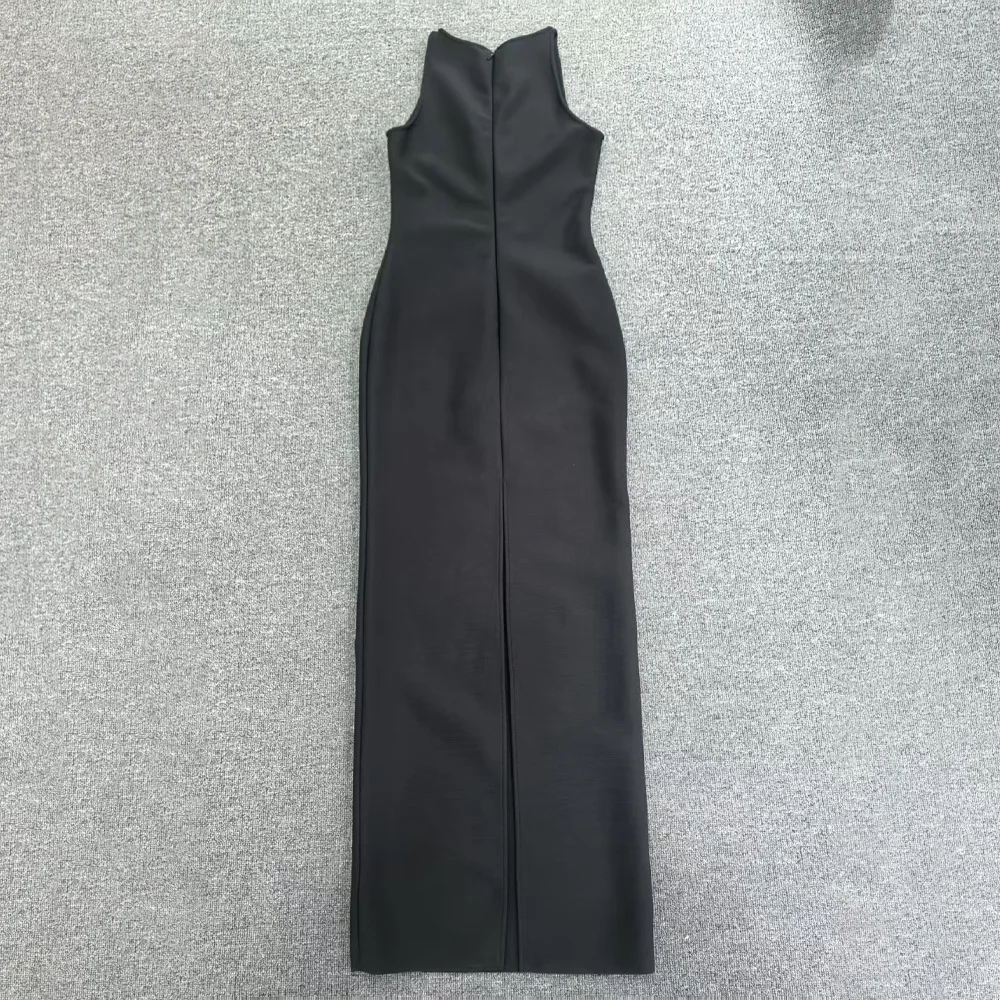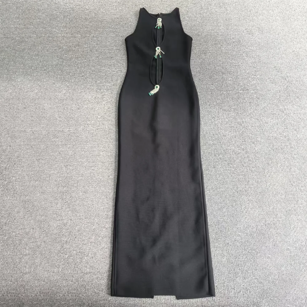 Product Name: Sexy Summer Hollow Out Crystal Tassel Sexy Maxi Dress for Women Black O Neck Sleeveless High Waist Bodycon Club Party Long Dress