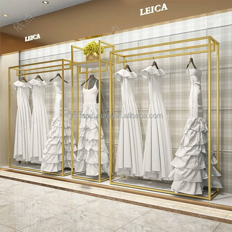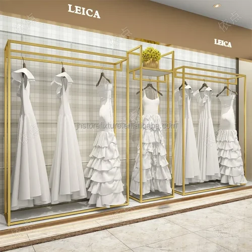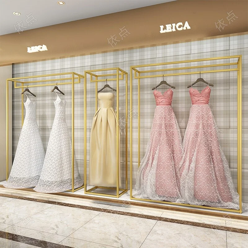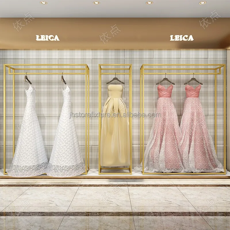 Product Name: Shop Decorations Boutique Bridal Store High End Stainless Steel Gold Wedding Dress Clothing Rack Display Showcase