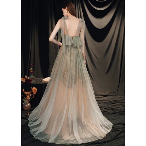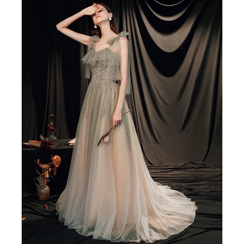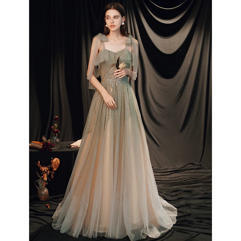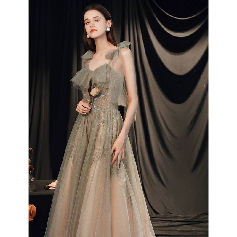 Spaghetti Strap Classic Style Gray Casual European Evening Dresses