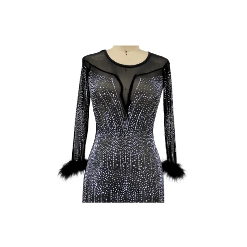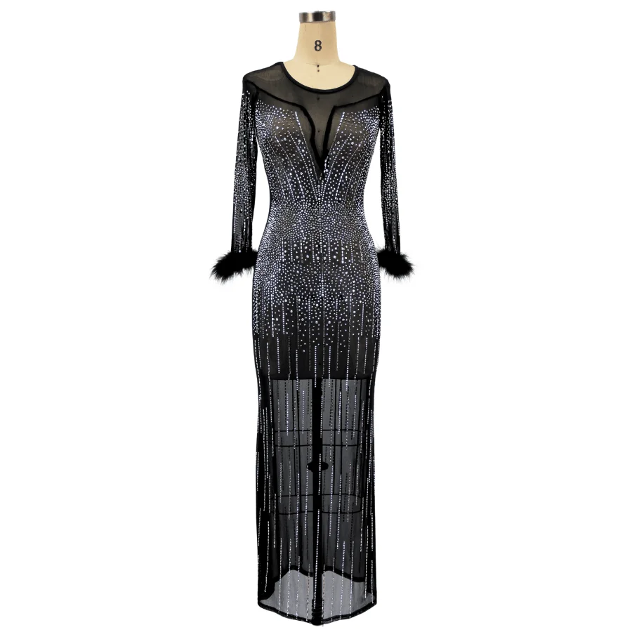 Spring and Autumn Fashion Sexy Dress Sexy Long Sleeves Sequins Feathers Evening Dress