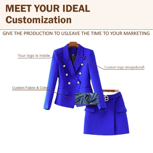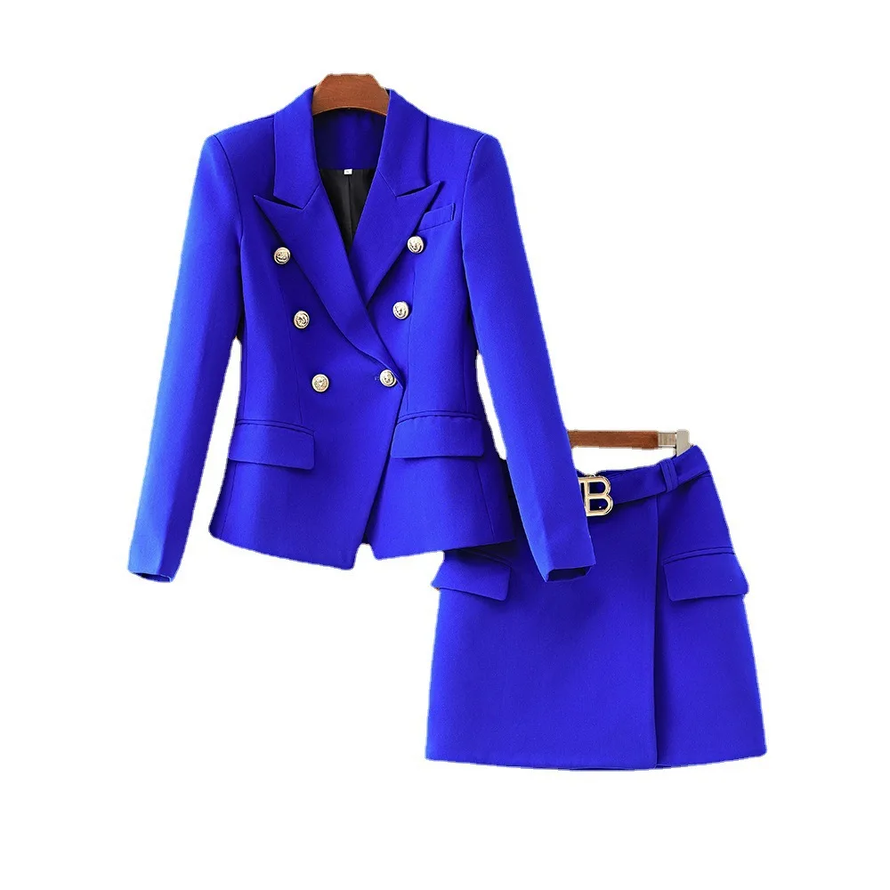 Product Name: Spring Autumn New INS Internet Celebrity Deep Blue Suit Top with B-Button Half Body Skirt Commuter OL Two Piece Set One Set