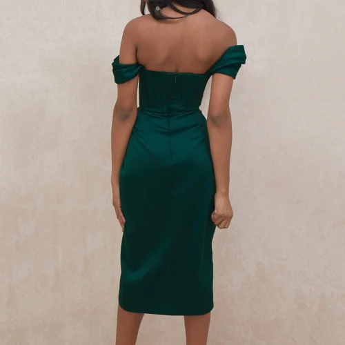 Product Name: Strapless Sundress Short Dresses for Party Velvet Emerald Green Satin Off Shoulder Dress