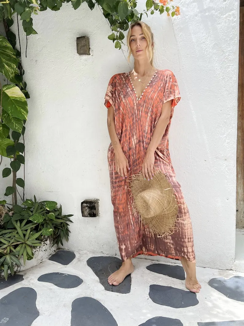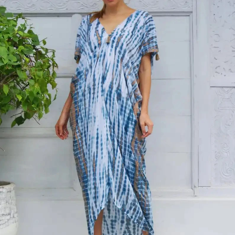 Product Name: Stylish Summer Long Dresses for Plus Size Women Printed & Tie-Dyed Casual Sexy Beach Wear Premium Indian Product-Size 6XL