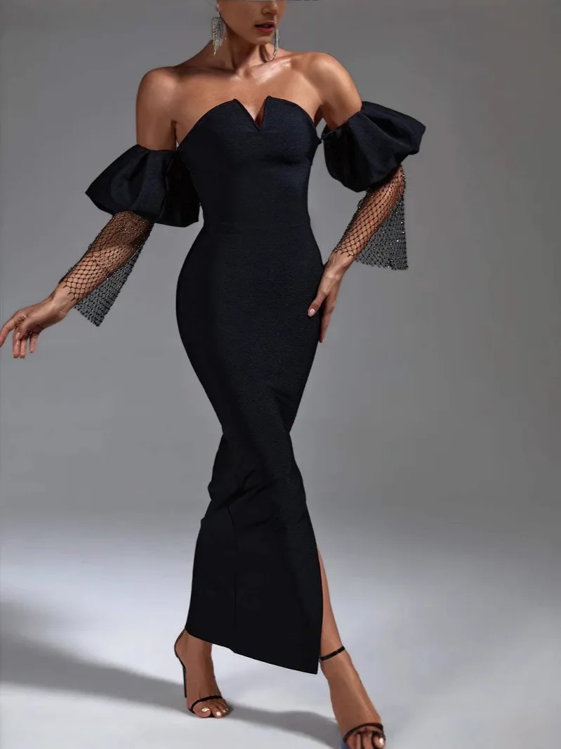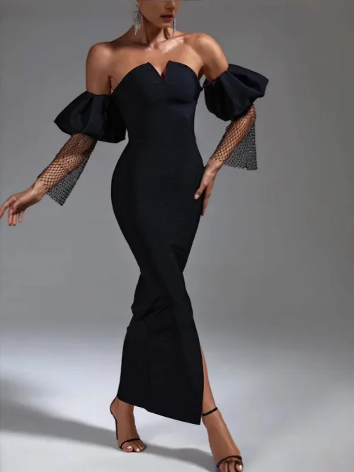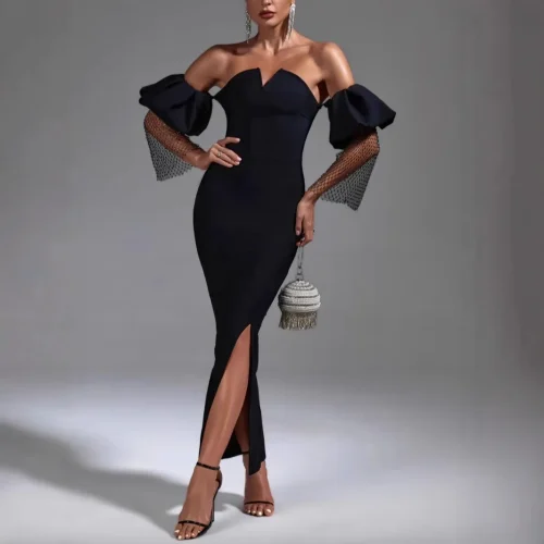 Product Name: Summer 2025 New Socialite Women’s Dress with Puffed Sleeves, Fashionable Slimming and Hip-wrapping Bandages