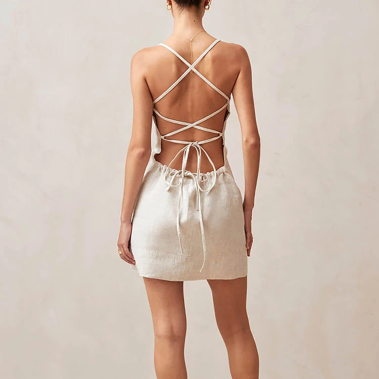 Product Name: Summer Beach Backless Dress Casual Slim Fit Sundress Bow Short Women Dresses