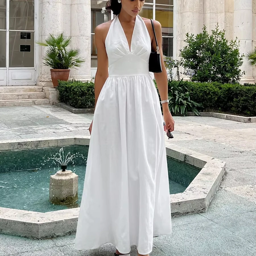 Product Name: Summer Cotton Maxi Dress for Women Girls Casual Halter Neck Long Dresses Solid Pattern Woven & Digital Printing