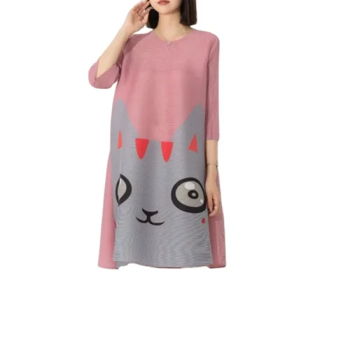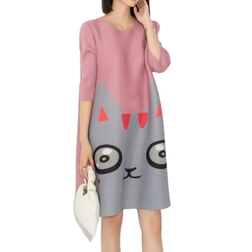Summer Cute Print A-line Pleated Dress Elegant Casual Dress for Women