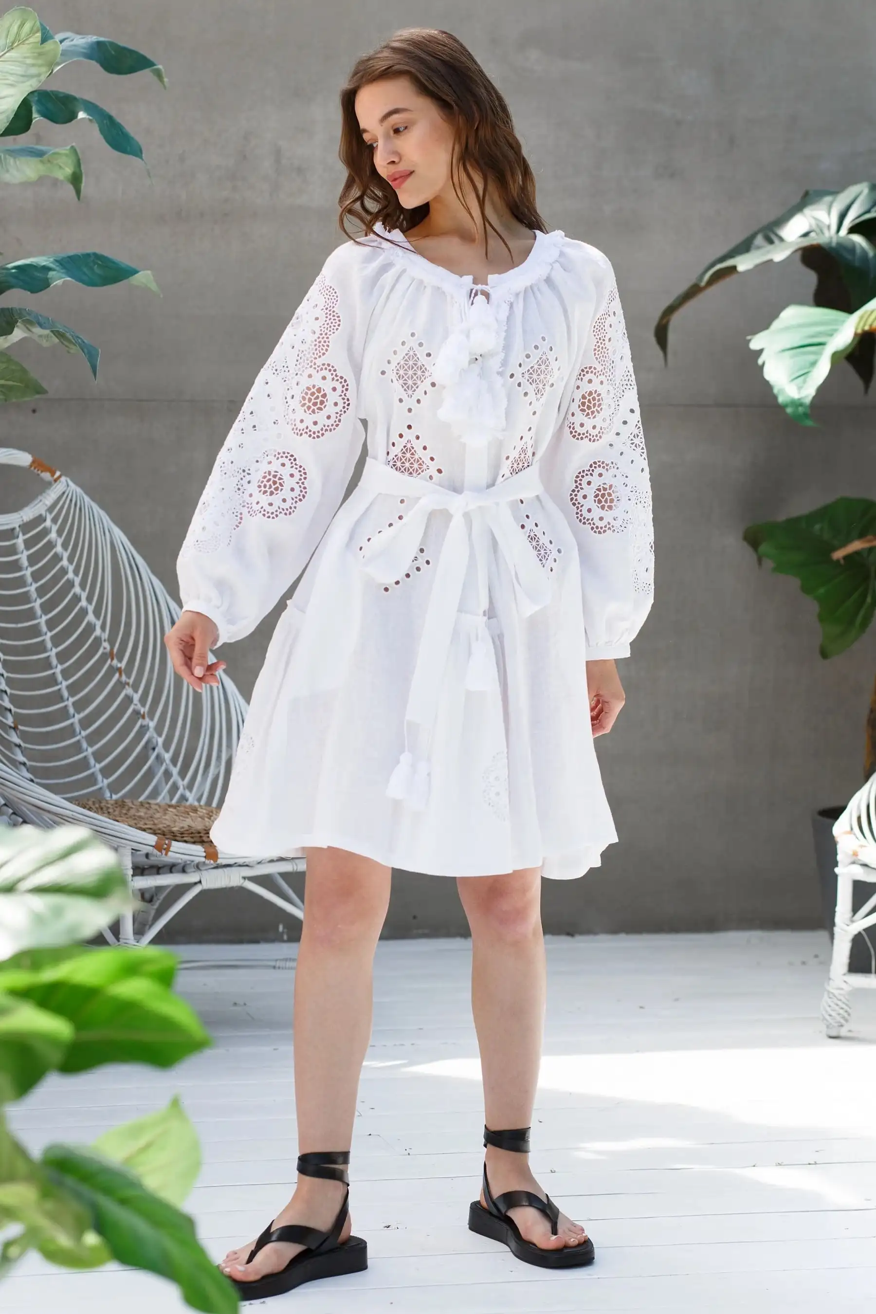 Product Name: Summer Dresses Long Sleeve Cotton Viscose Midi Length Women Ladies Elegant Floral Printing Women Dress