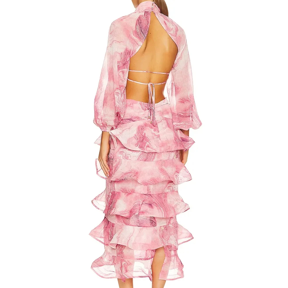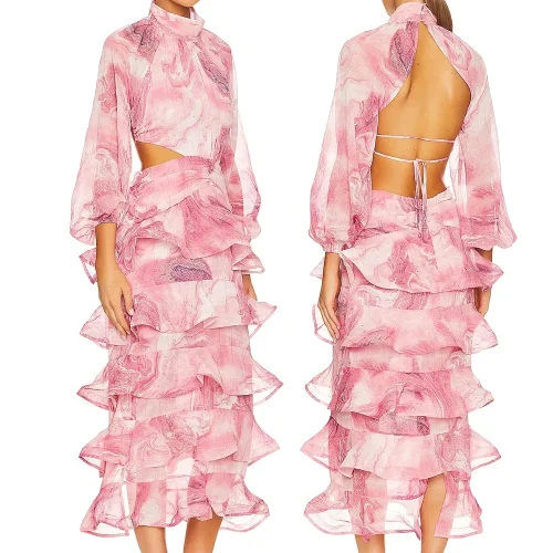 Summer Elegant Floral Dress for Women Sexy Casual Style Ruffle Sleeve Chiffon O-Neck Women Sexy Evening Party Dress