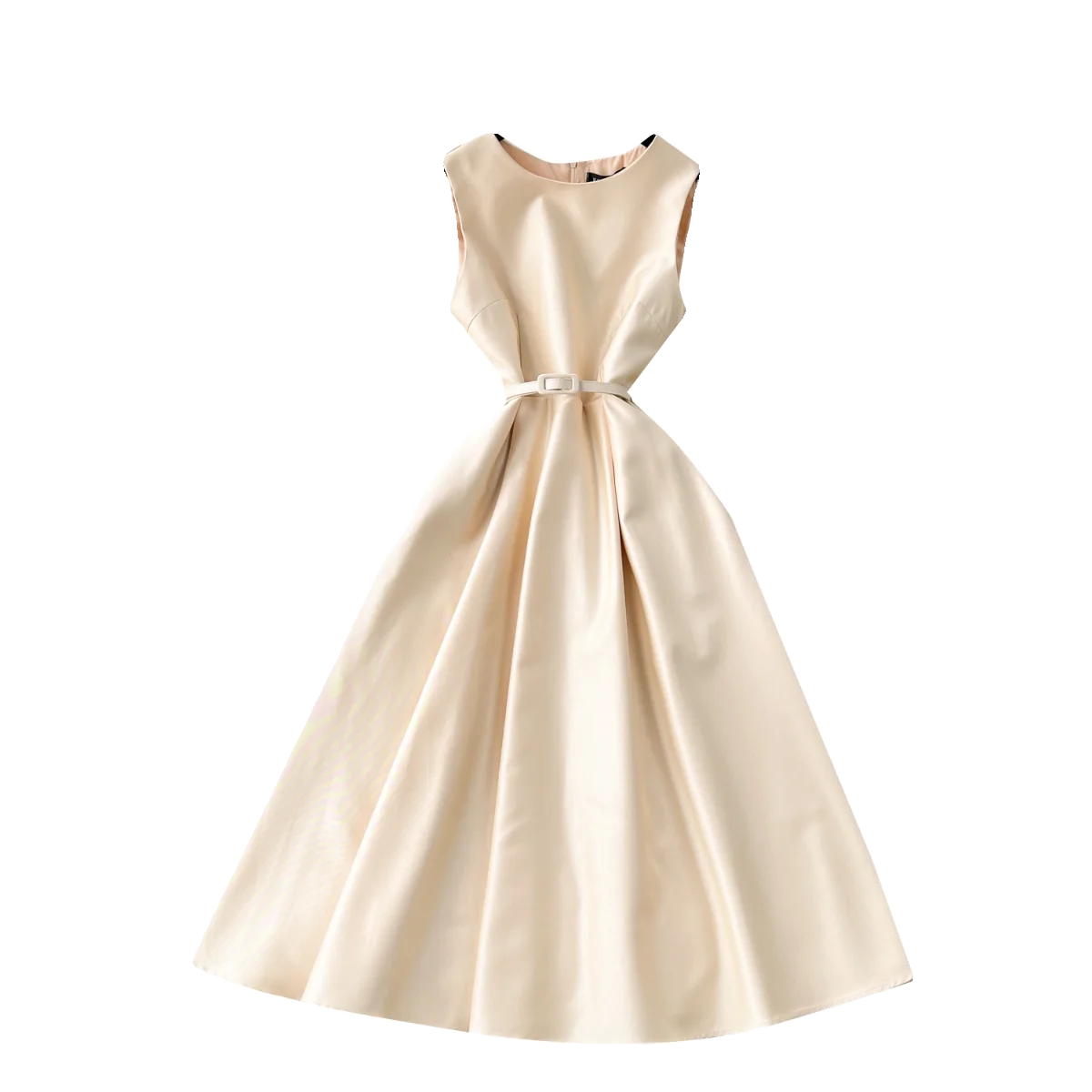Summer Elegant Sun Midi Dress for Women Sleeveless Empire Solid Lace Vestidos Black