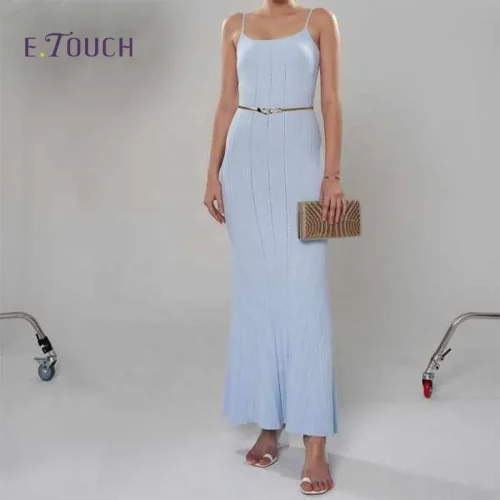 Product Name: Summer Exclusive Fashion Women’s Knit Dress Good Quality Spaghetti Strap Solid Color Sleeveless Slim Fishtail Long Dress