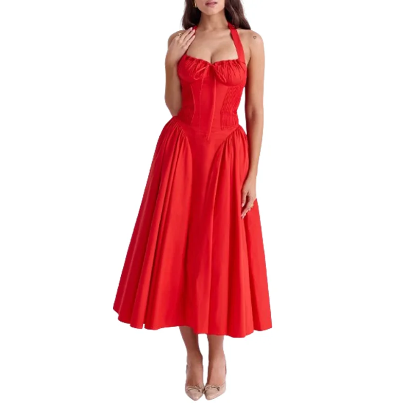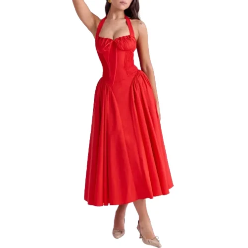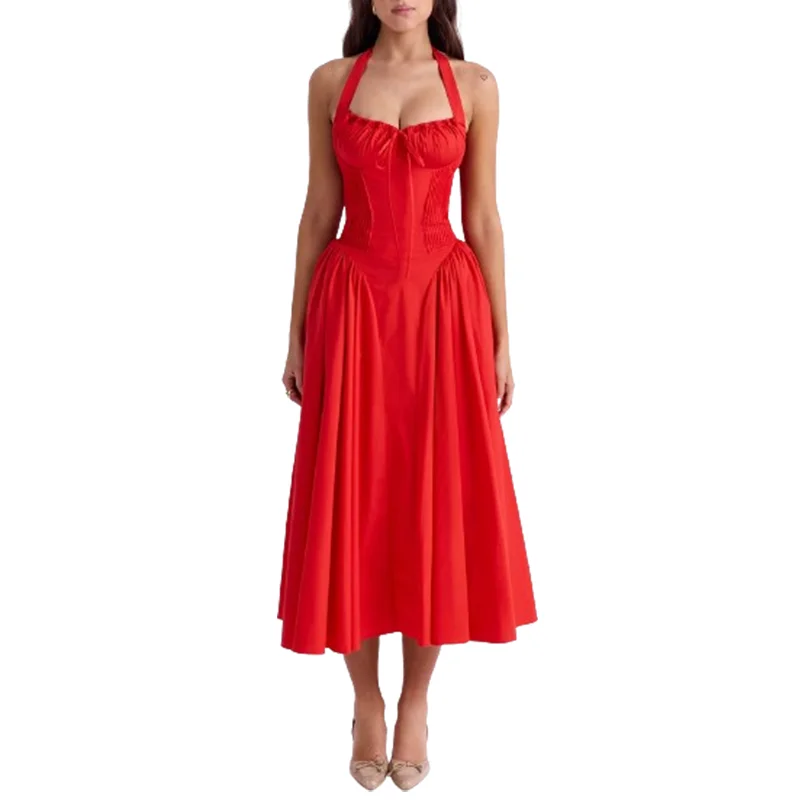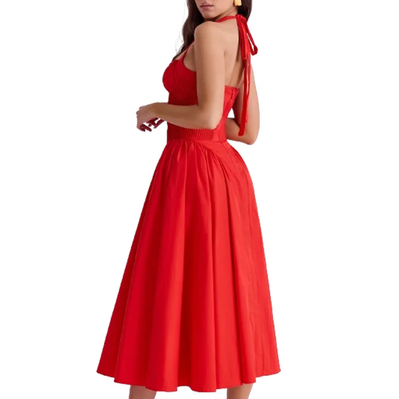 Summer Halter Bodycon Mini Dress Tie Cotton Halter Midi Dress Tie Halter Straps Zipper Midi Sundress