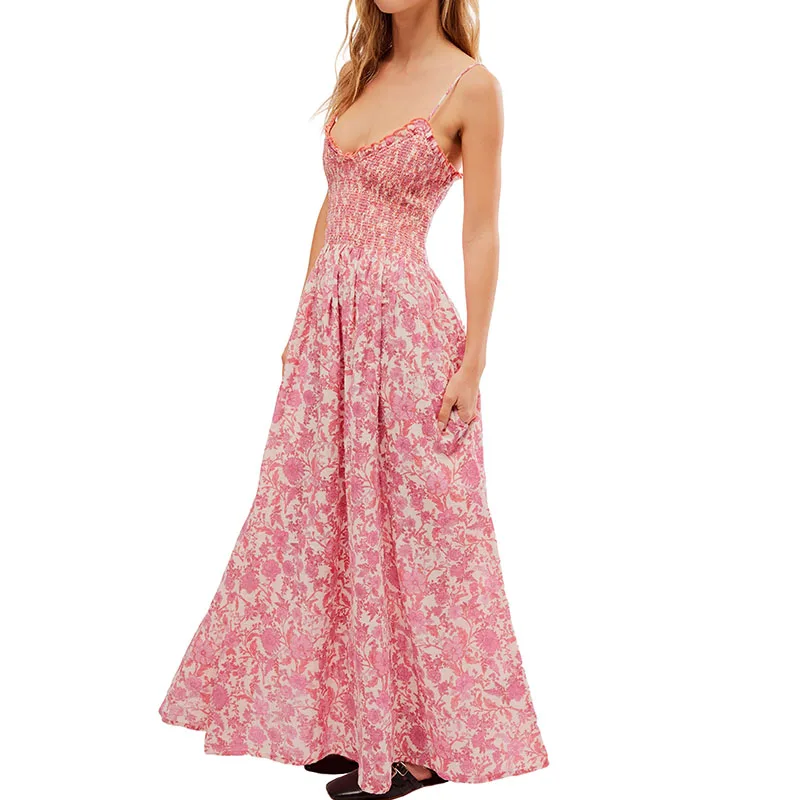 Product Name: Summer Lady Elegant Sundress V-Neck Side Pockets Sweet Floral Print Sleeveless Maxi Casual Women’s Dresses