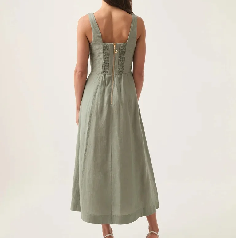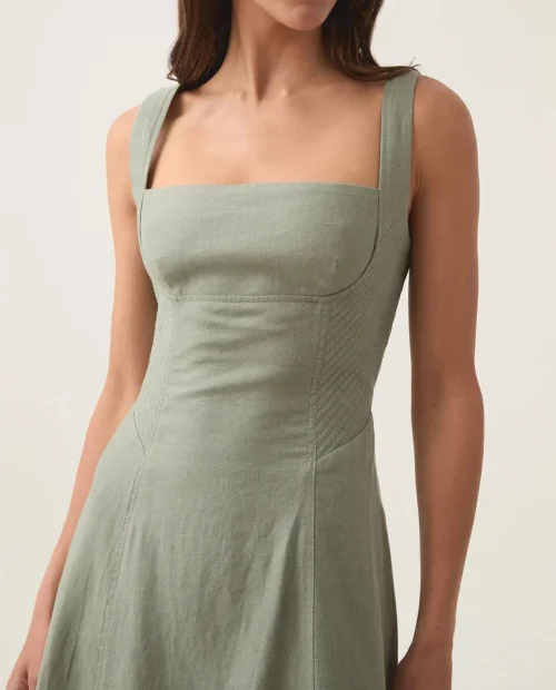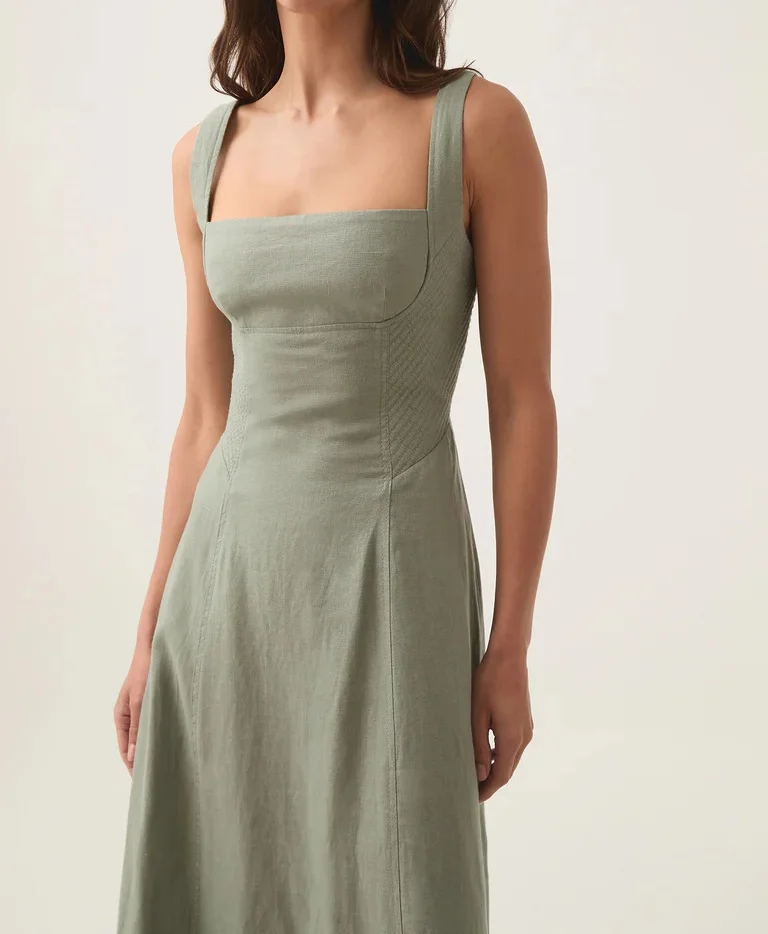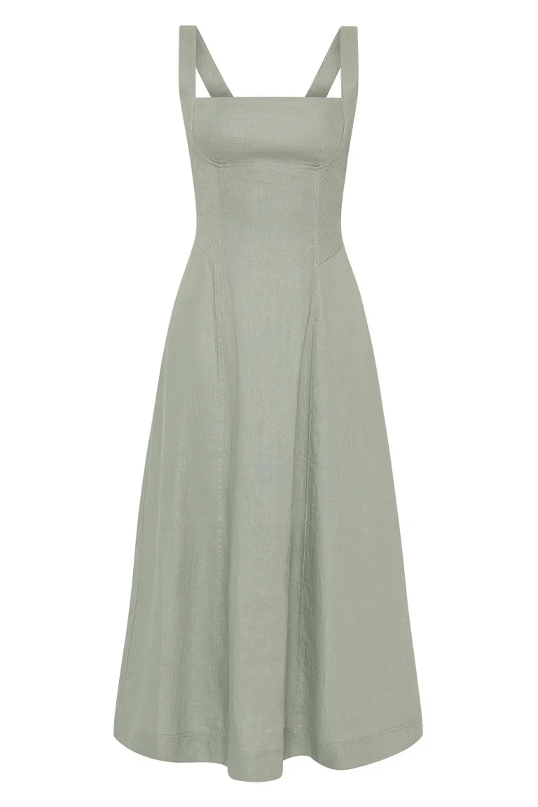 Summer New Arrival 100%Linen Women Midi Dress Sleeveless Square Neckline Midi Linen Dresses for Women
