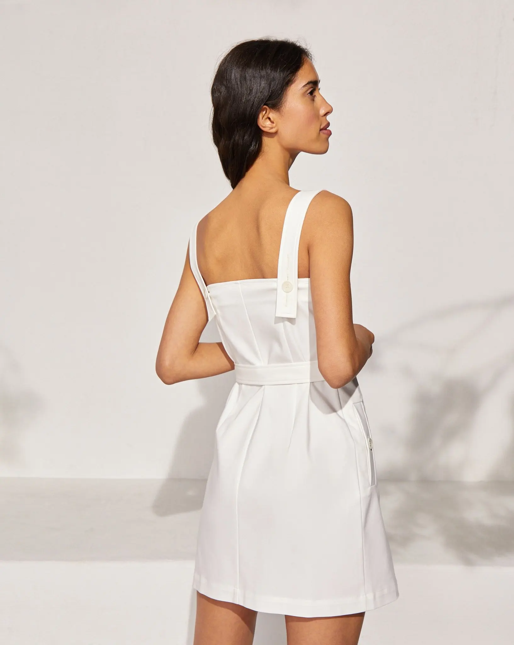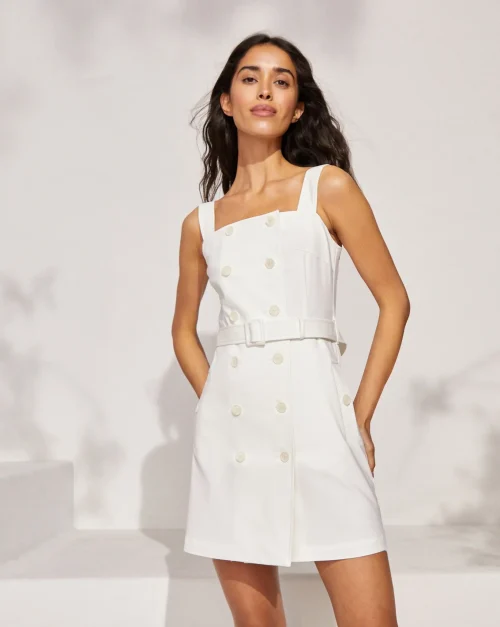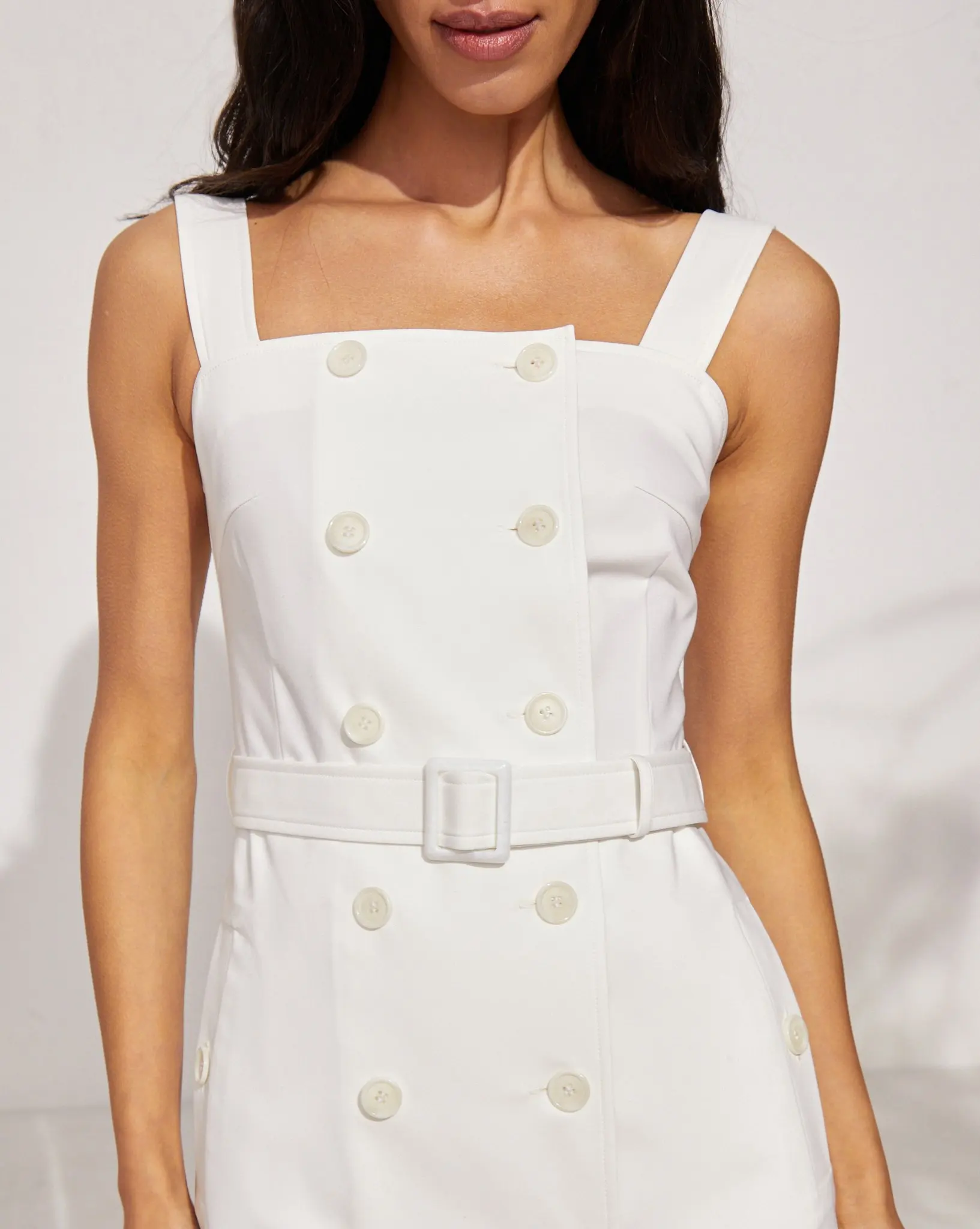 Product Name: Summer Safari Style Sleeveless Double Breasted Plain Mini Sundress Dress With Belt for Women