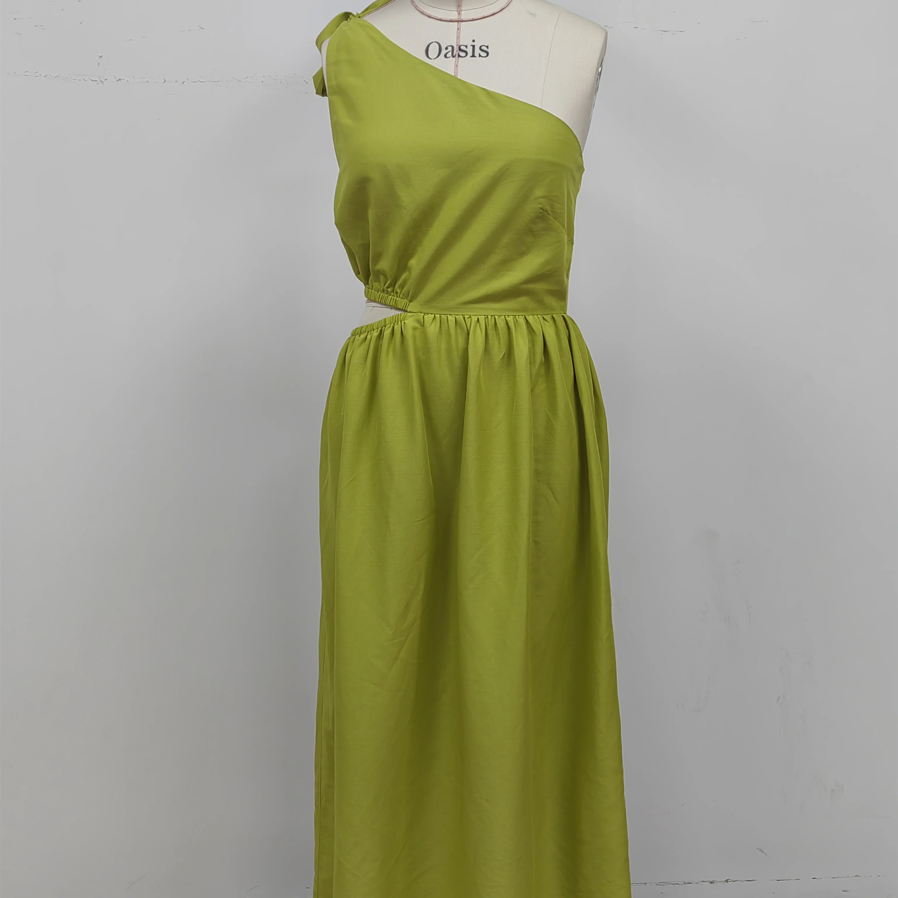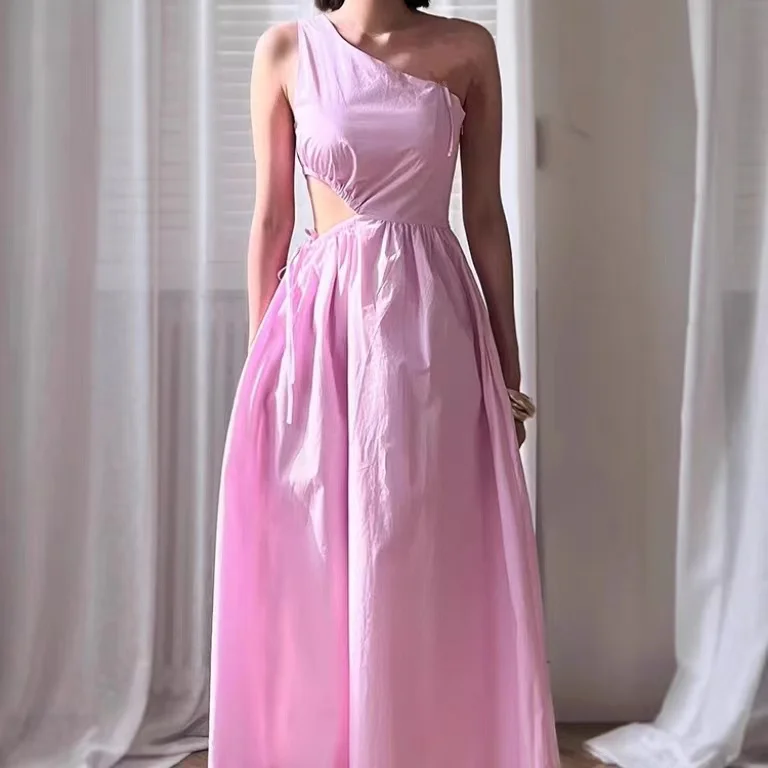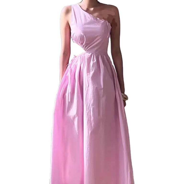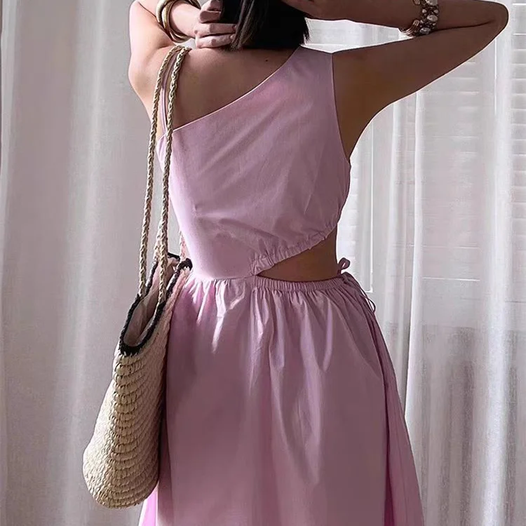 Product Name: Summer Sleeveless Elegant Solid Color One-shoulder Waist Cut-out Sundress Flowing A-line Beach Maxi Dress