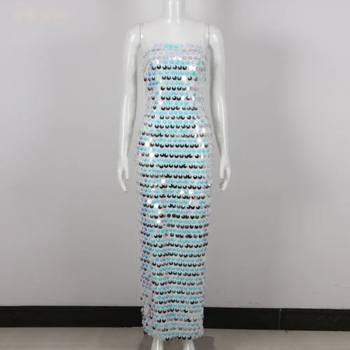 Product Name: Summer Vacation Shining Sequin Mesh Dresses Women Slip Sequins Elegant Evening Dress