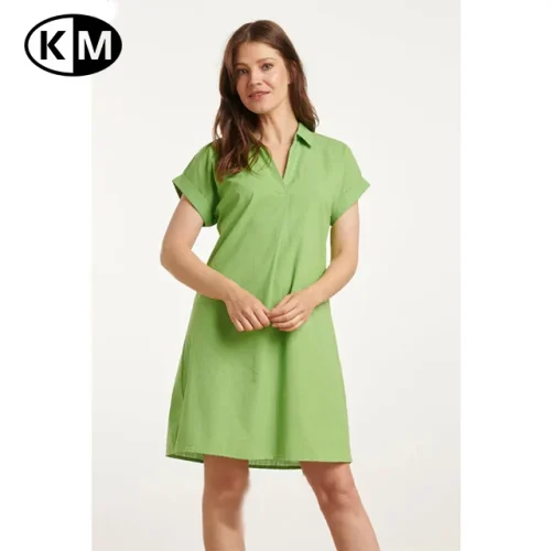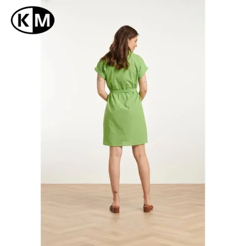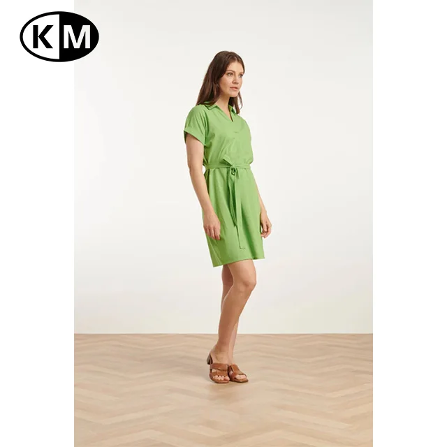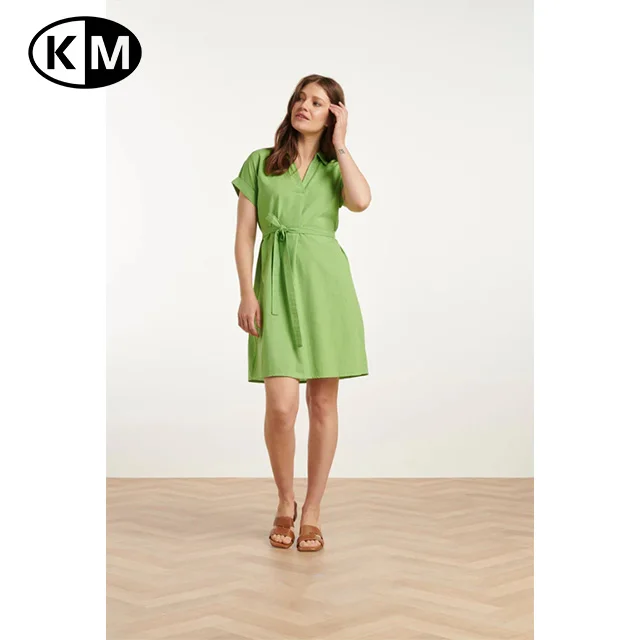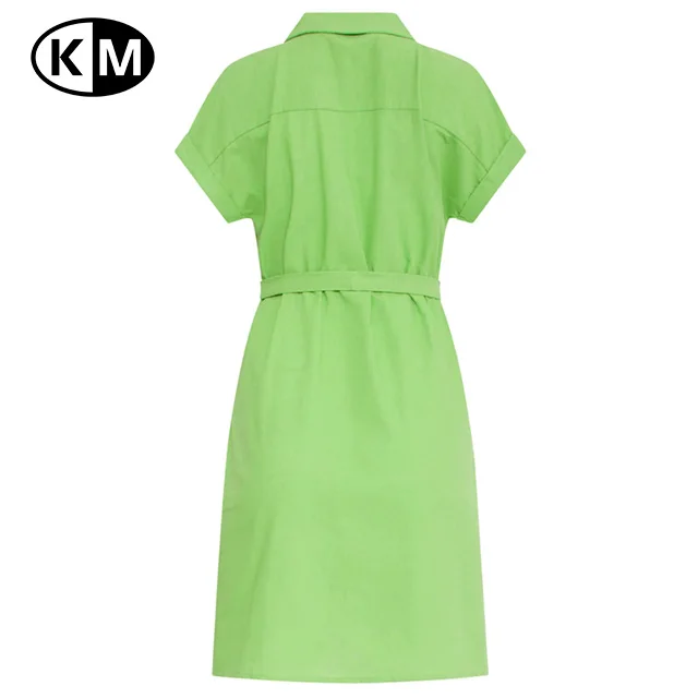 Product Name: Summer Women’s Fashionable Solid Pattern Short-Sleeve Green Belted Dress